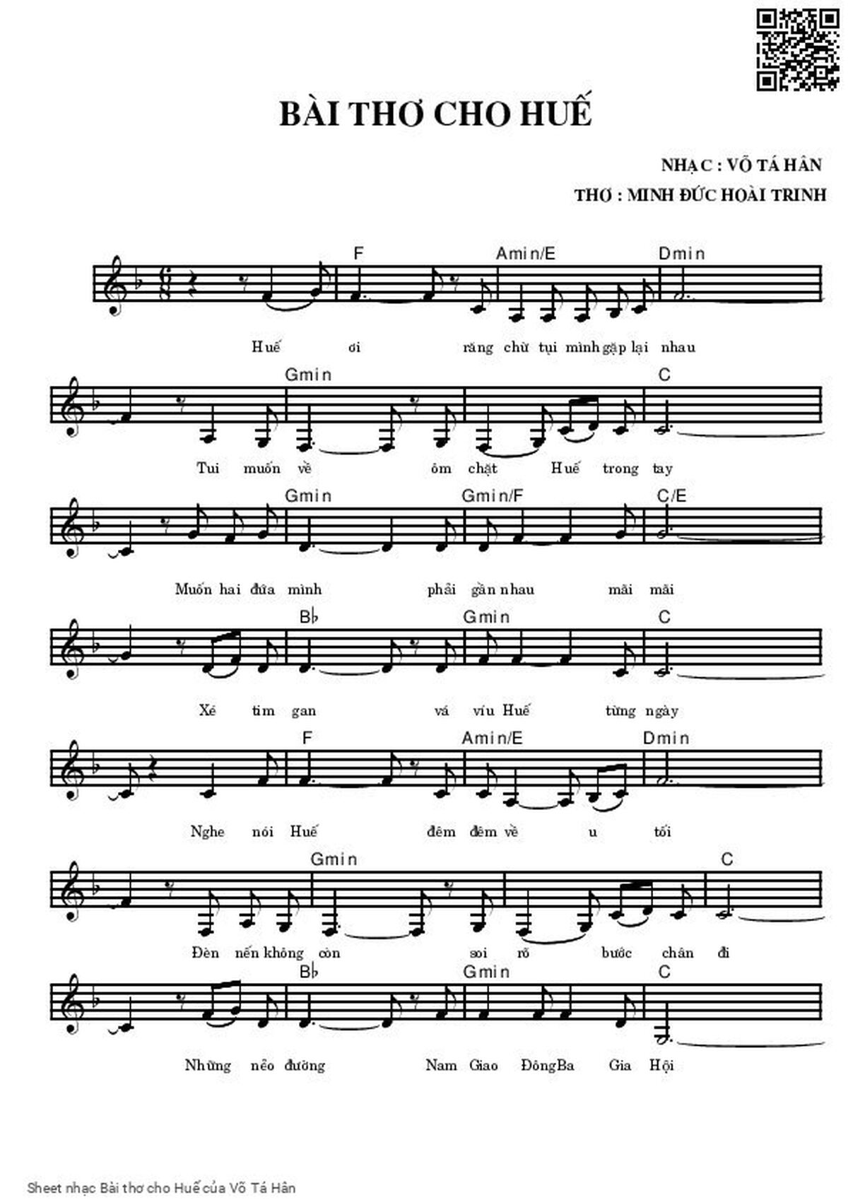 Transposition is the process of moving a song's melody and chords up or down in pitch by a constant interval. The direction of the transposition tool is indicated by a plus (+) sign for up and a minus (-) sign for down. Hover mouse over chords signs to see the chords chart of Bài thơ cho Huế song.