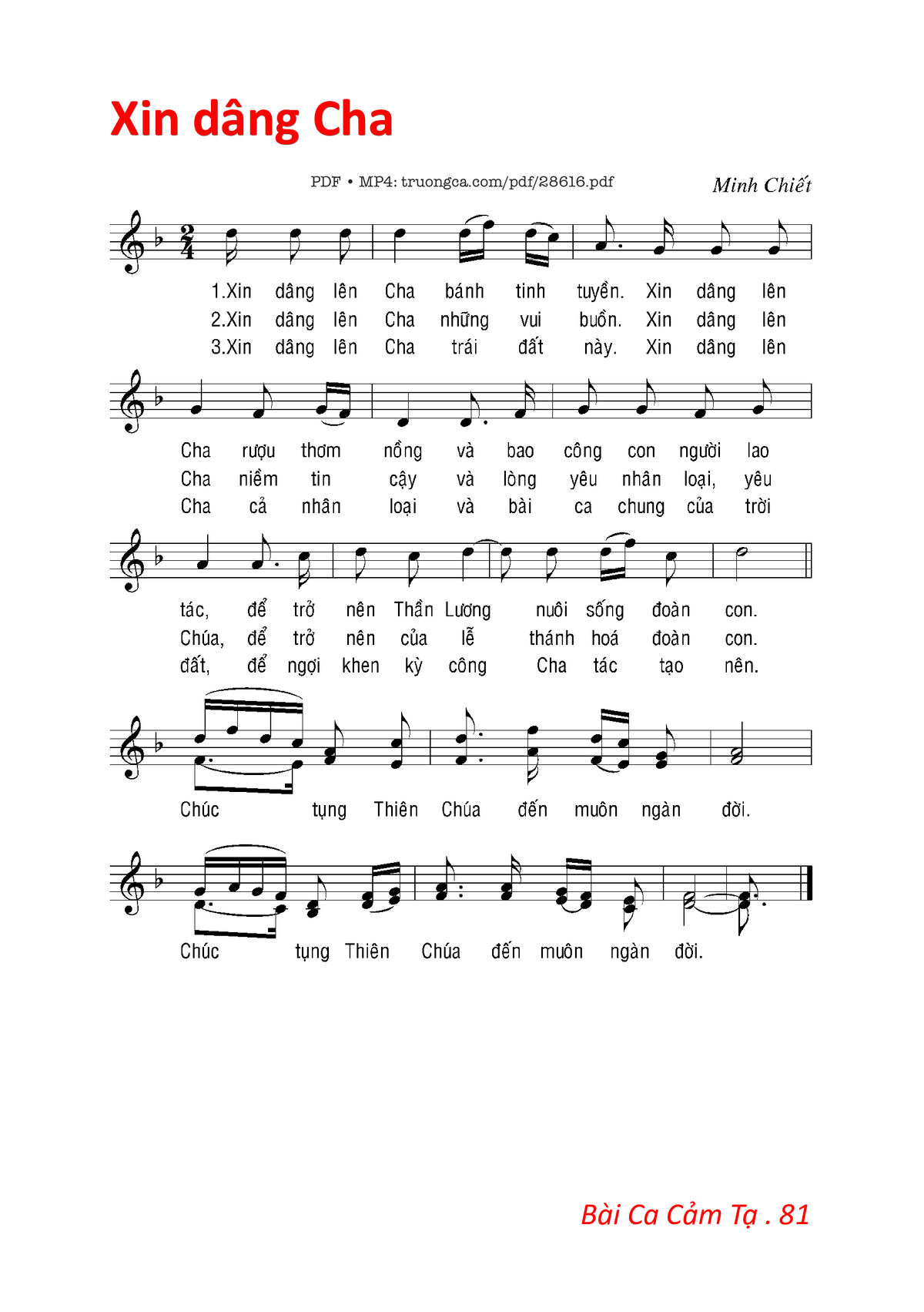 Sheet PDF with the same name Xin Dâng Cha: