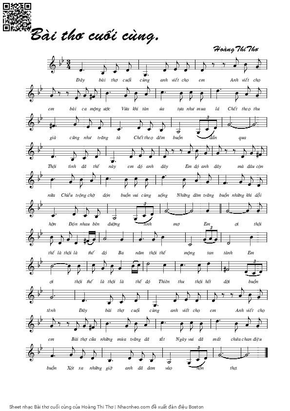 Hoàng Thi Thơ Đây bài thơ cuối cùng anh viết cho em Anh viết cho em bài ca mộng ước [PDF] [Sheet] [Lyrics] [Mp4/Midi]