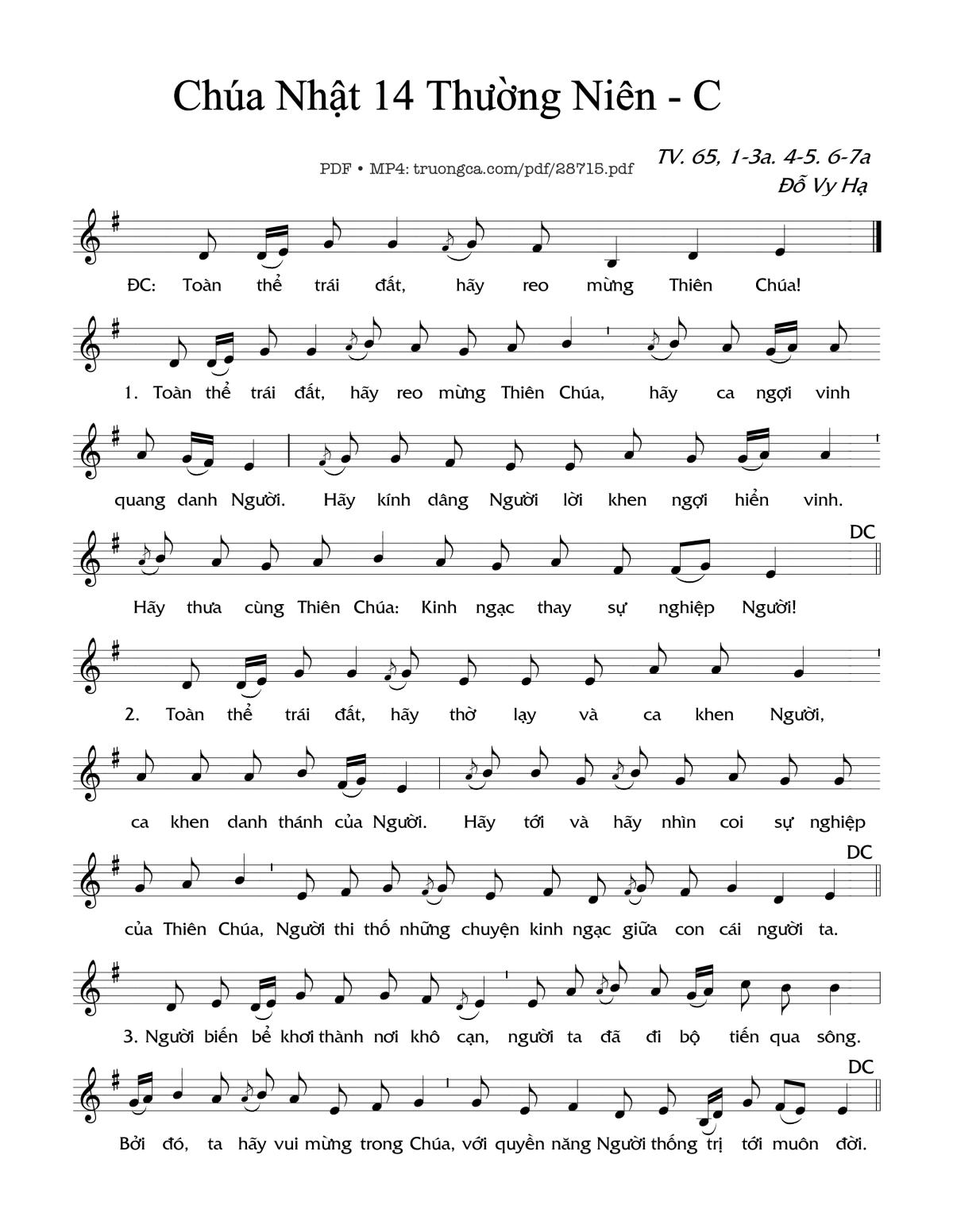 Sheet PDF with the same name Thánh Vịnh 65, Chúa Nhật 14C Thường Niên: