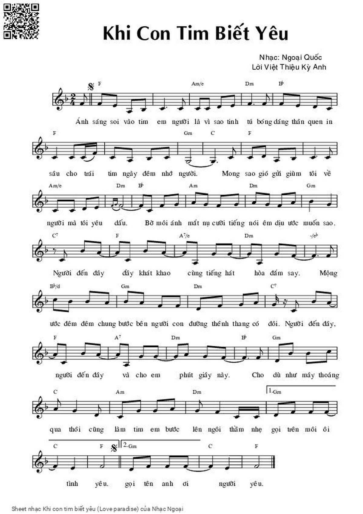 Nhạc Ngoại Ánh sáng soi vào tim em người là vì sao tinh tú [PDF] [Sheet] [Lyrics] [Mp4/Midi]