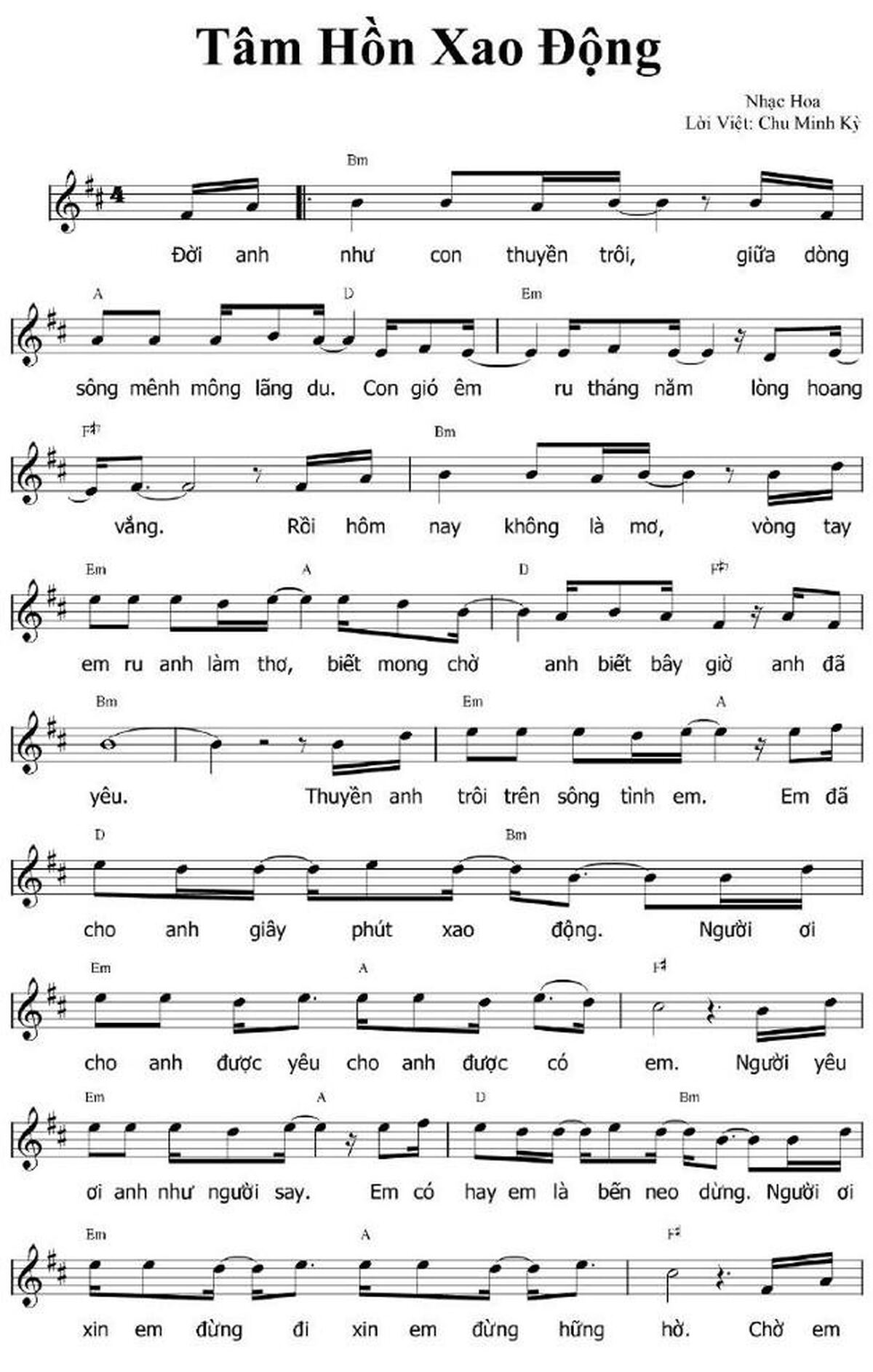 Sheet music Tâm Hồn Xao Động by Chu Minh Ký and PDF file was posted here to support you to practice singing perfectly. Sheets with notes and chords are for reference only, for non-commercial purposes only, not involved with earning money by buying and selling. Copyright is belong to song writer/author and copyright owner. Truongca.com do not own any copyrighted content. You can download the high-quality PDF files which contain staffs by PDF link above.