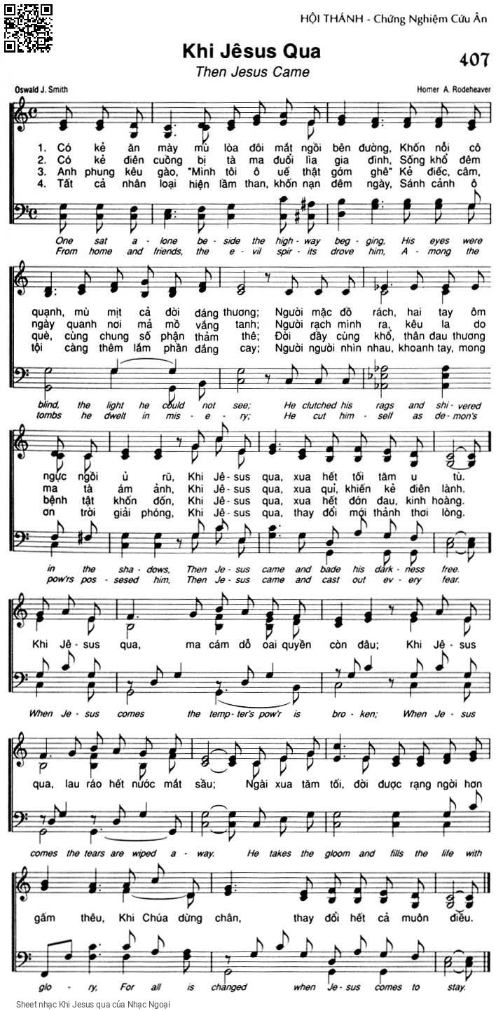 The Videos/audios Khi Jesus qua by Nhạc Ngoại were embed from Youtube, Musescore or the other 3rd links. Videos are subject to 3rd's copyright control and may be removed by YouTube's copyright rules and 3rd's policies or maybe included advertisements. If you cannot access to these songs, this mean that have been removed.