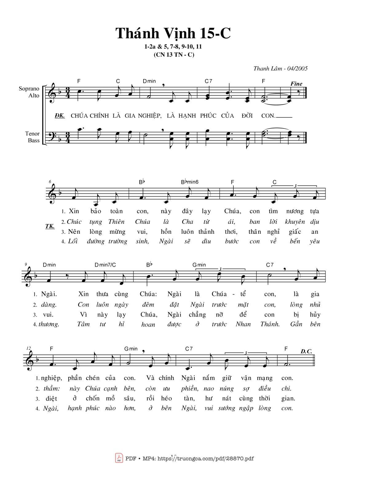 Sheet PDF with the same name Thánh Vịnh 15, Chúa Nhật 13C Thường Niên: