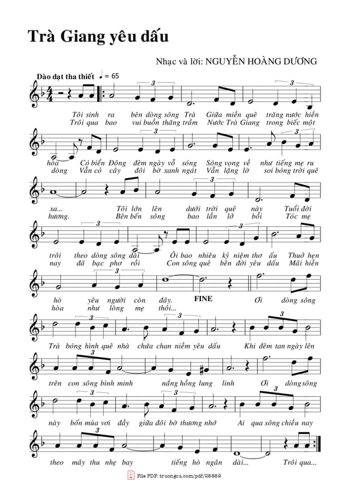 Nguyễn Hoàng Dương Tôi sinh ra bên dòng sông Trà Giữa miền quê trăng nước hiền hòa [PDF] [Sheet] [Lyrics] [Mp4/Midi]