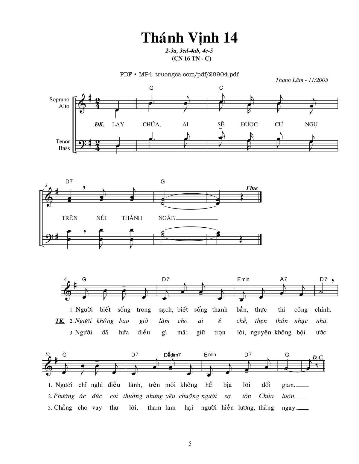 Thanh Lâm Lạy Chúa ai sẽ được cư ngụ trên núi thánh Ngài [PDF] [Sheet] [Lyrics] [Mp4/Midi]