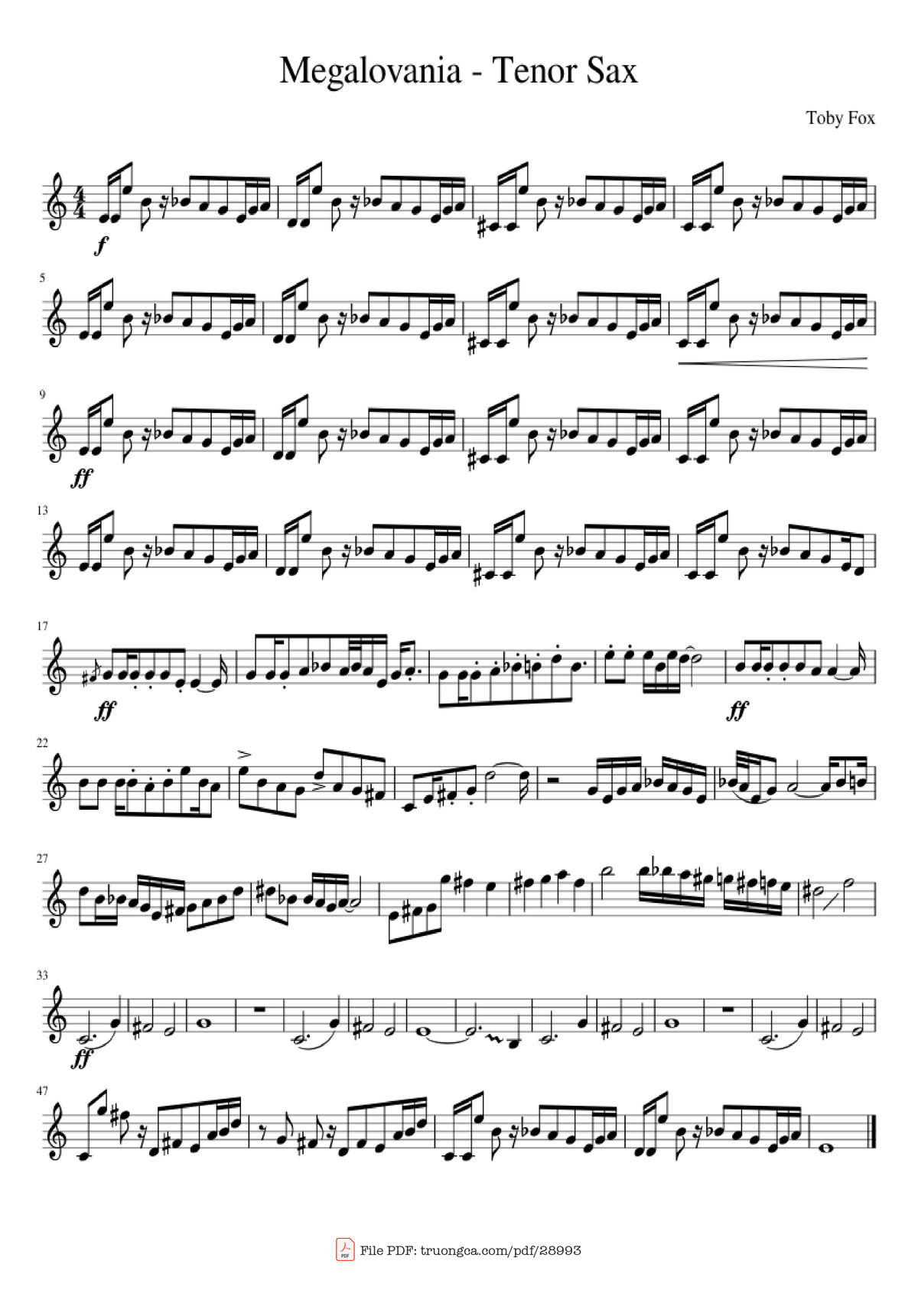 Sheet PDF with the same name Megalovania - Tenor Sax: