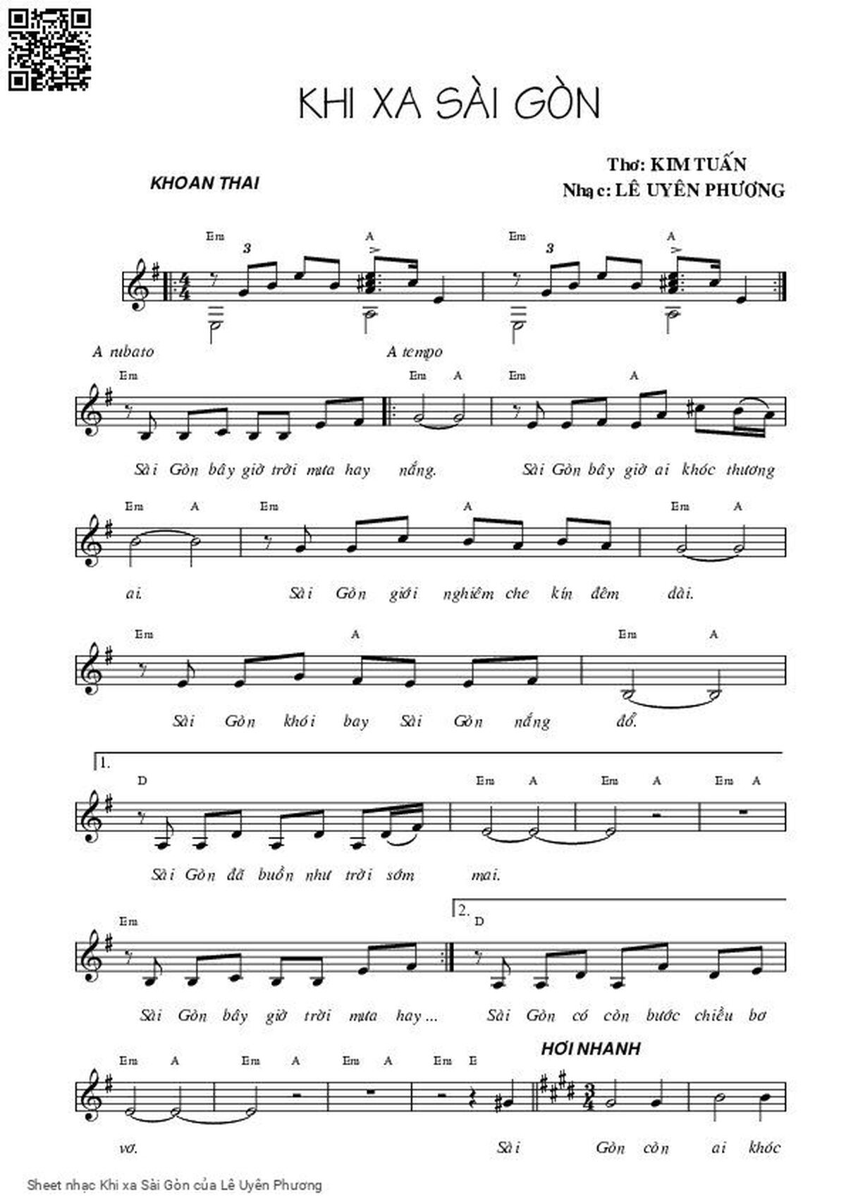 Lê Uyên Phương Sài Gòn bây giờ trời mưa hay nắng Sài Gòn bây giờ ai khóc thương ai [PDF] [Sheet] [Lyrics] [Mp4/Midi]