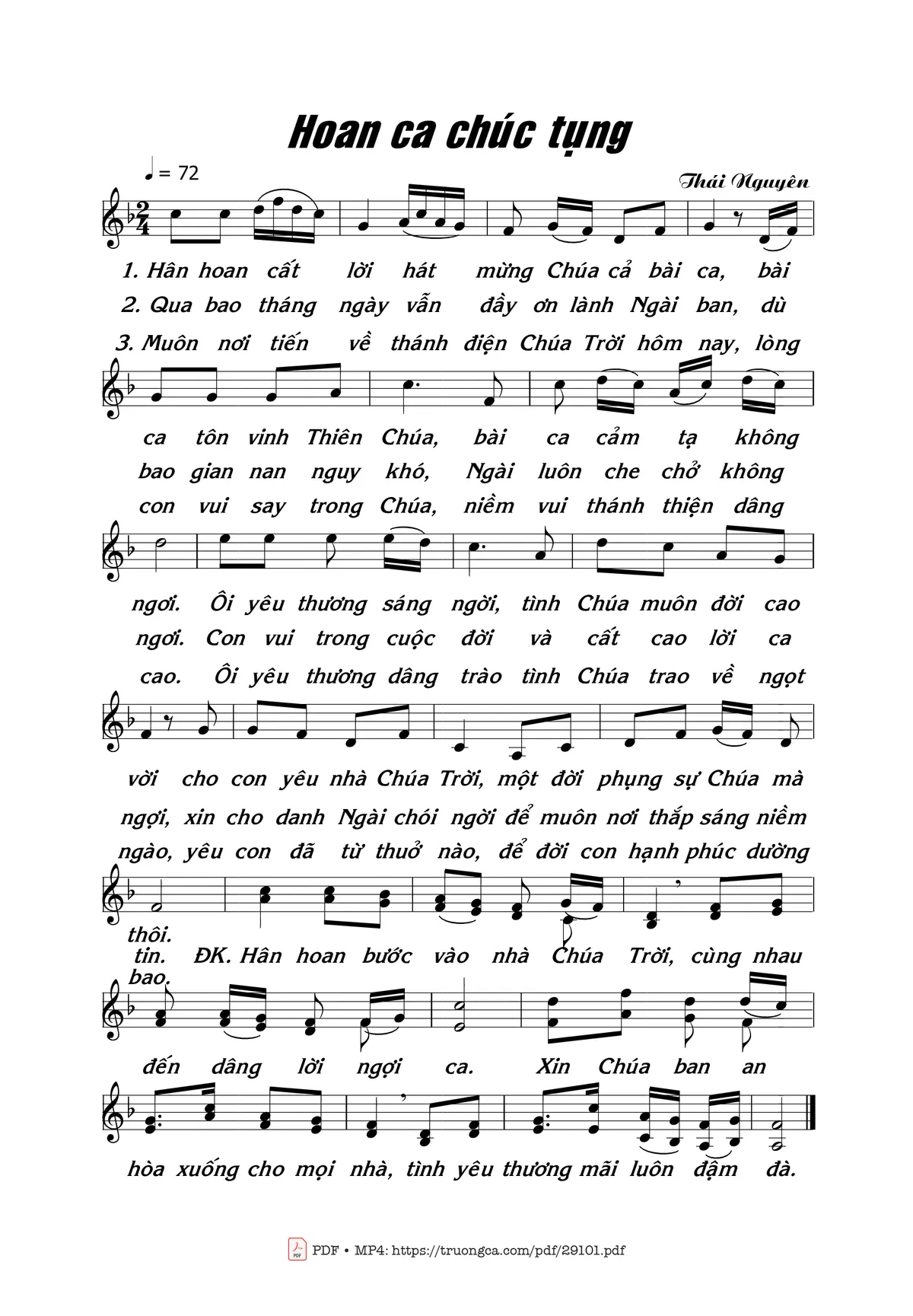 Thái Nguyên Hoan ca cất lời hát mừng Chúa cả bài ca [PDF] [Sheet] [Lyrics] [Mp4/Midi]