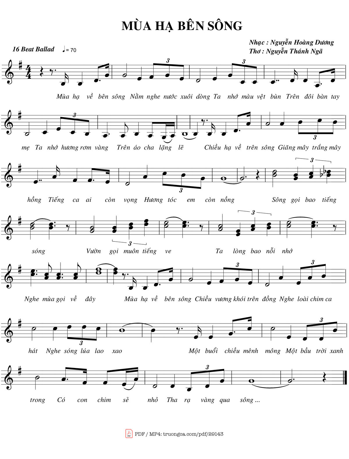 Nguyễn Hoàng Dương Mùa hạ về bên sông Nằm nghe nước xuôi dòng [PDF] [Sheet] [Lyrics] [Mp4/Midi]