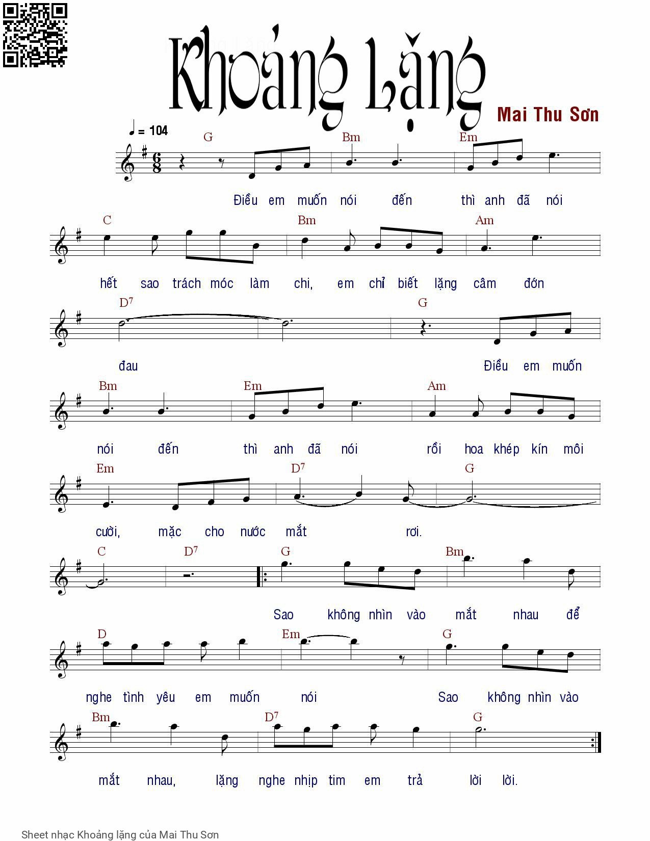 Transposition is the process of moving a song's melody and chords up or down in pitch by a constant interval. The direction of the transposition tool is indicated by a plus (+) sign for up and a minus (-) sign for down. Hover mouse over chords signs to see the chords chart of Khoảng lặng song.