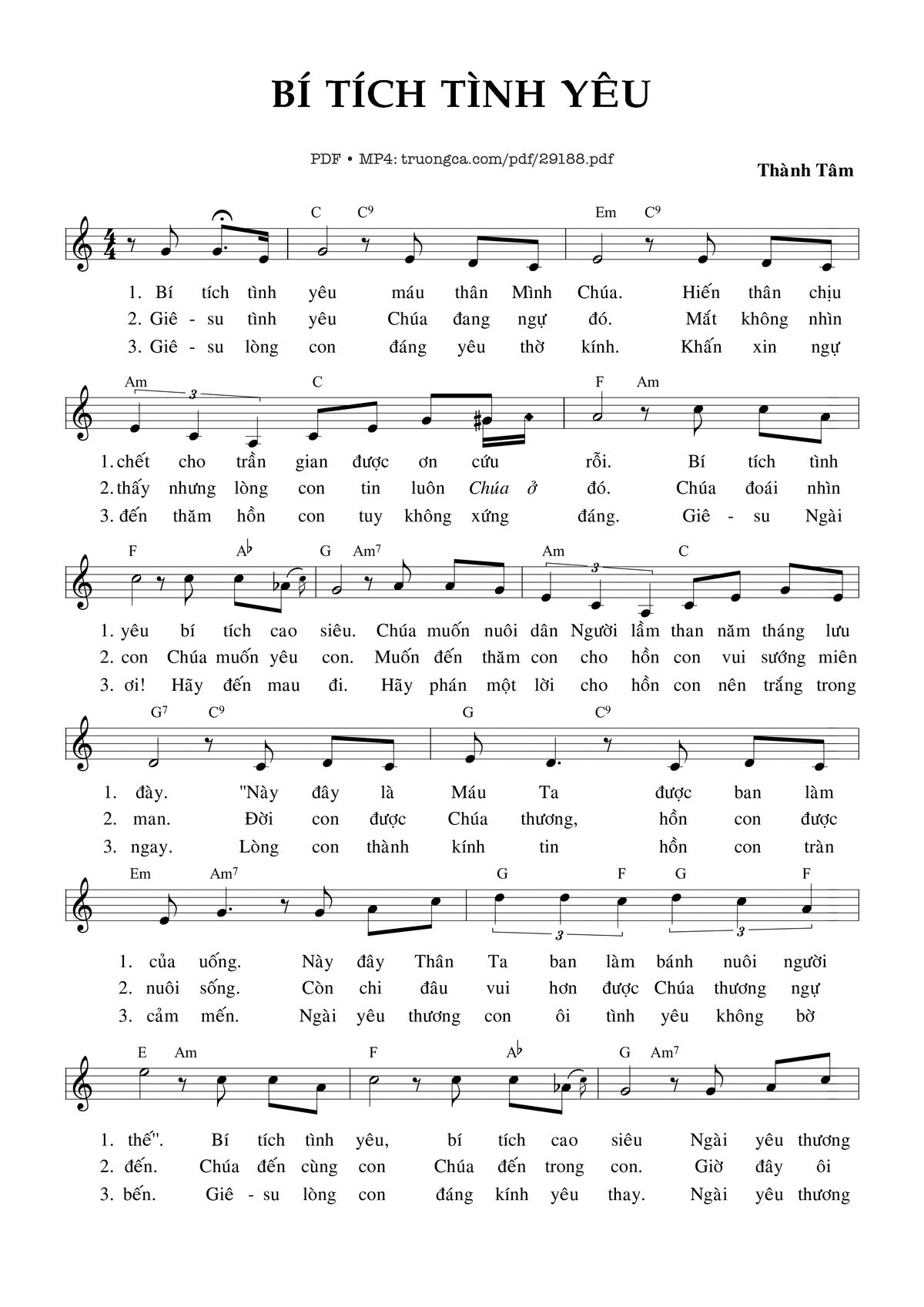 Thành Tâm Bí Tích tình yêu Máu Thân Mình Chúa hiến thân chịu chết cho trần gian được ơn cứu rỗi [PDF] [Sheet] [Lyrics] [Mp4/Midi]