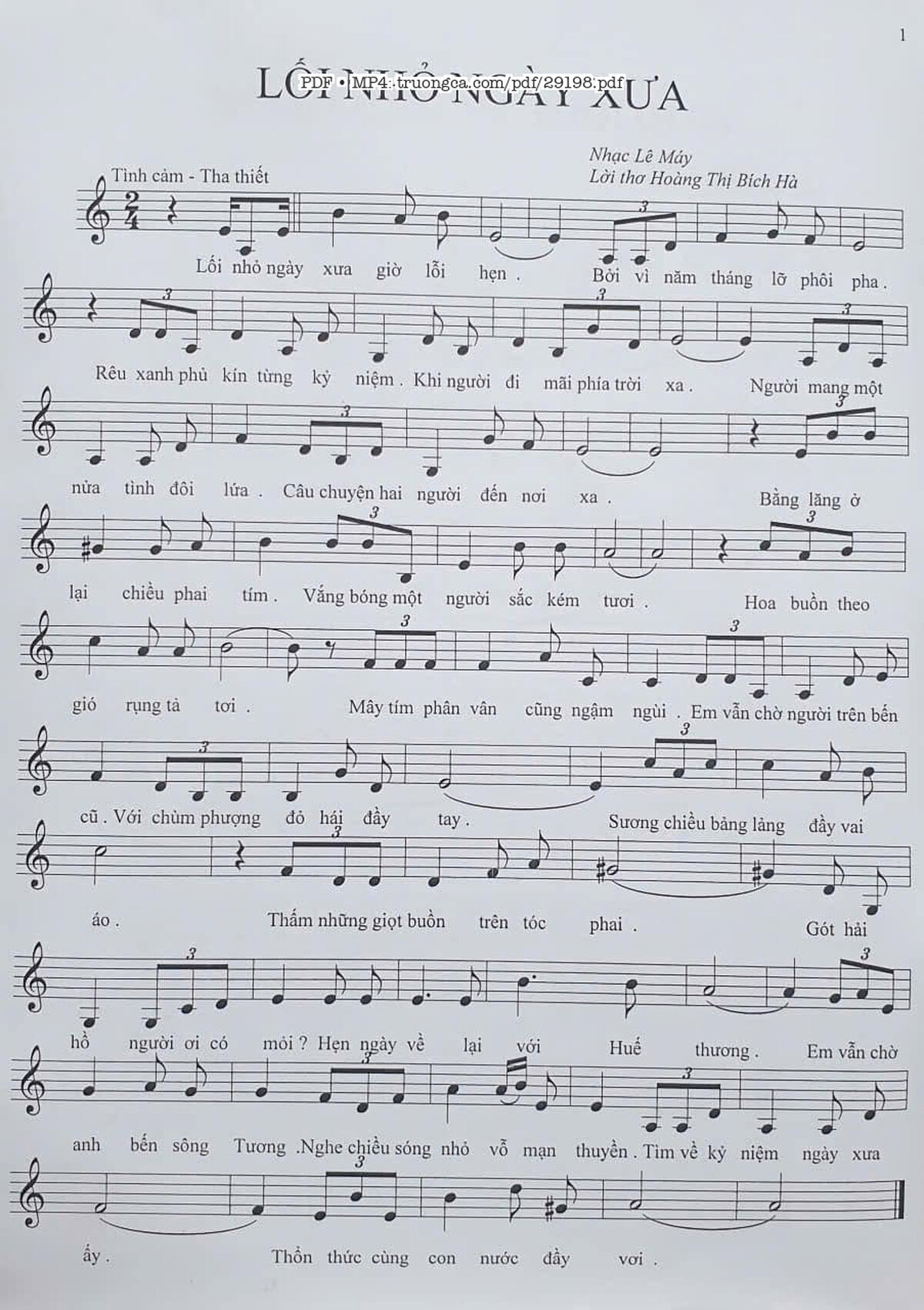 Lê Máy Lối nhỏ ngày xưa giờ lỗi hẹn Bởi vì năm tháng lỡ phôi pha [PDF] [Sheet] [Lyrics] [Mp4/Midi]