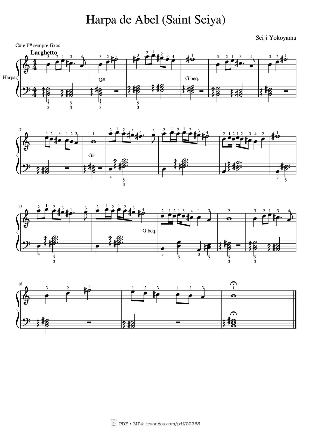 Please contact us to get MIDIThe Videos/audios Harpa de Abel (Saint Seiya) by Seiji Yokoyama were embed from Youtube, Musescore or the other 3rd links. Videos are subject to 3rd's copyright control and may be removed by YouTube's copyright rules and 3rd's policies or maybe included advertisements. If you cannot access to these songs, this mean that have been removed.