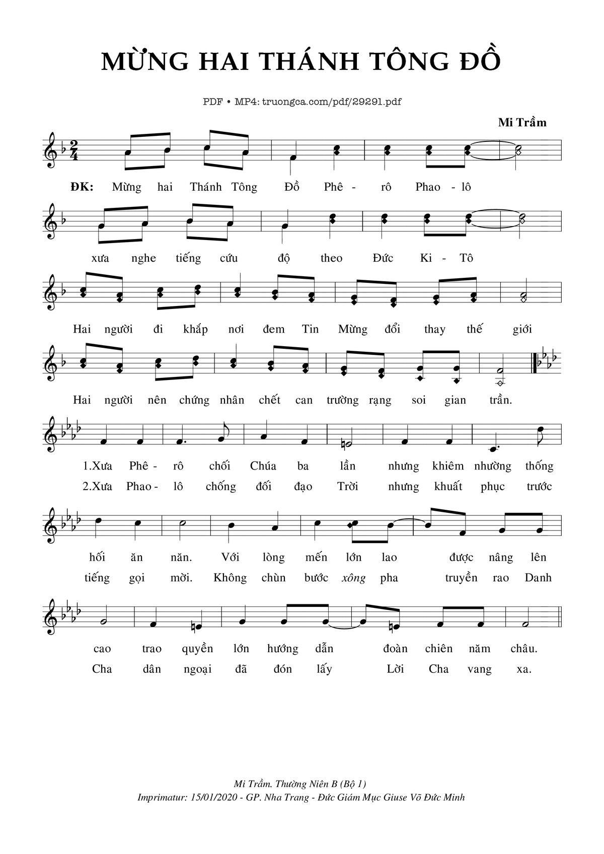 Mi Trầm Mừng hai Thánh Tông Đồ Phêrô Phaolô xưa nghe tiếng cứu độ theo Đức Kitô [PDF] [Sheet] [Lyrics] [Mp4/Midi]