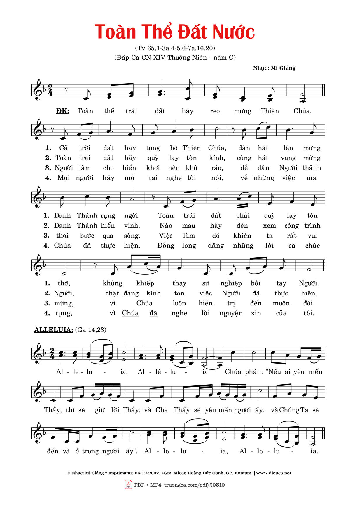 More similar sheets PDF Thánh Vịnh 65 (Chúa Nhật 14 Thường Niên C):
