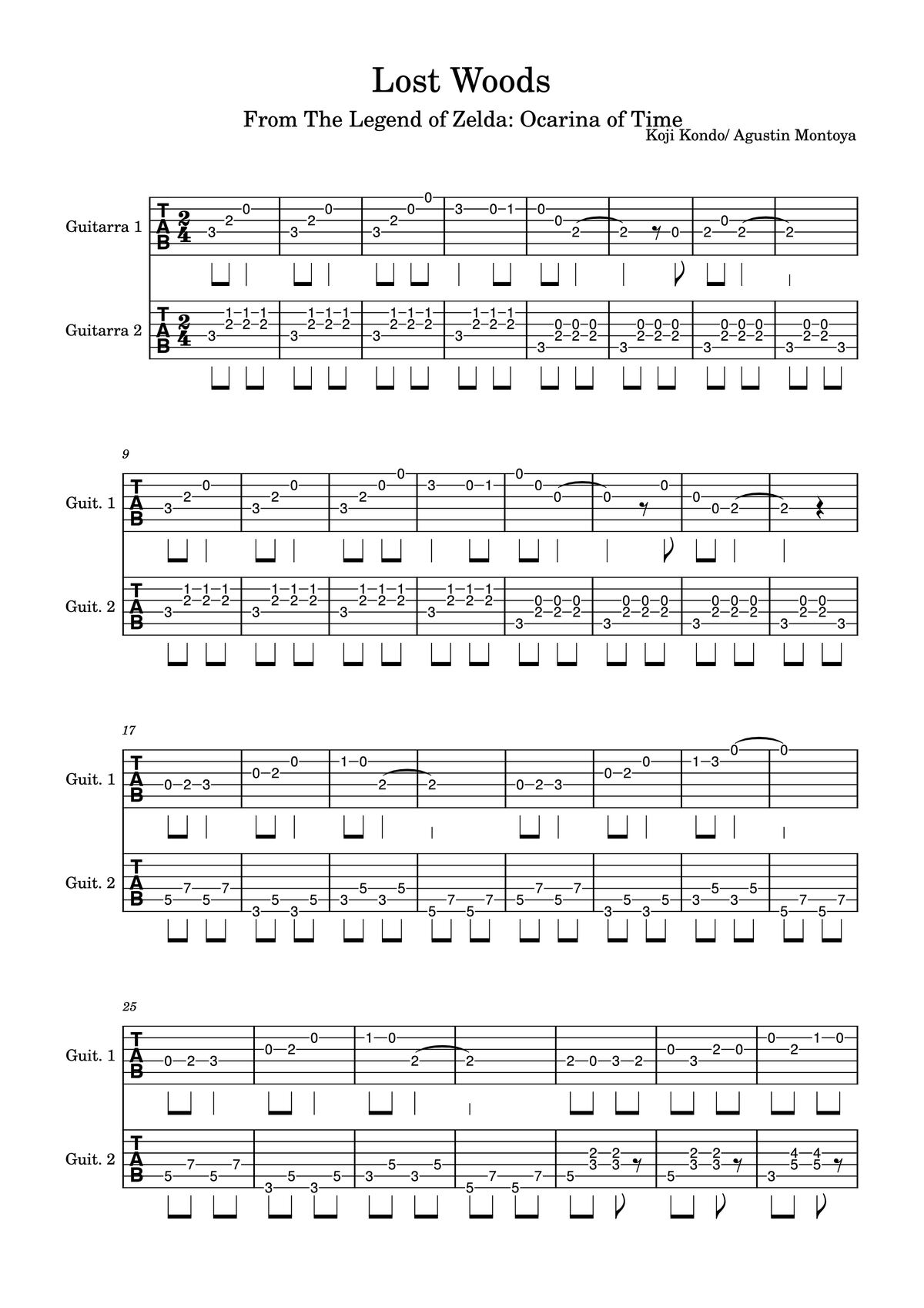 Download and print in PDF or MIDI free sheet music of Lost Woods - Koji Kondo, 近藤 浩治 for Lost Woods by Koji Kondo, 近藤 浩治 arranged by aguaguagu for Guitar (String Duet)