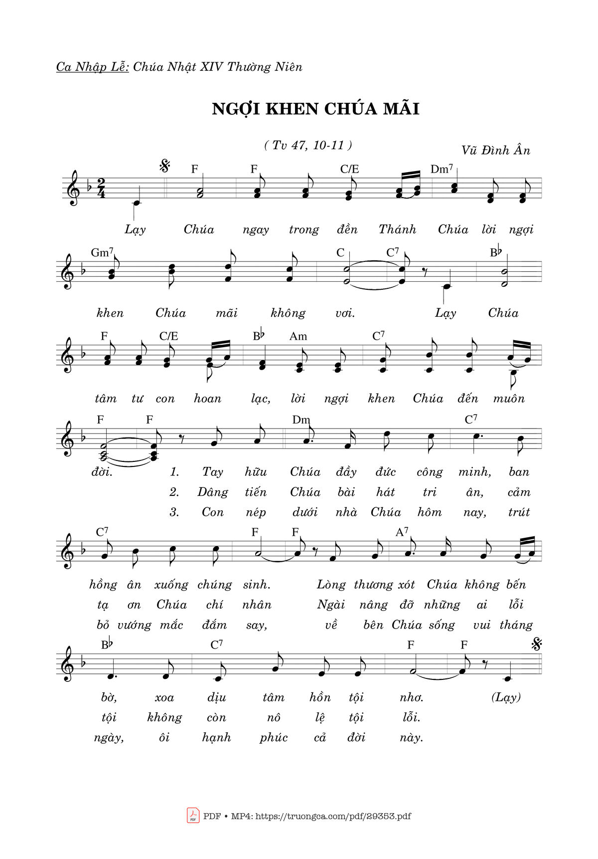 Vũ Đình Ân Nhập Lễ Chúa Nhật Thường Niên Lạy Chúa ngay trong đền Thánh Chúa lời ngợi khen Chúa mãi không vơi [PDF] [Sheet] [Lyrics] [Mp4/Midi]