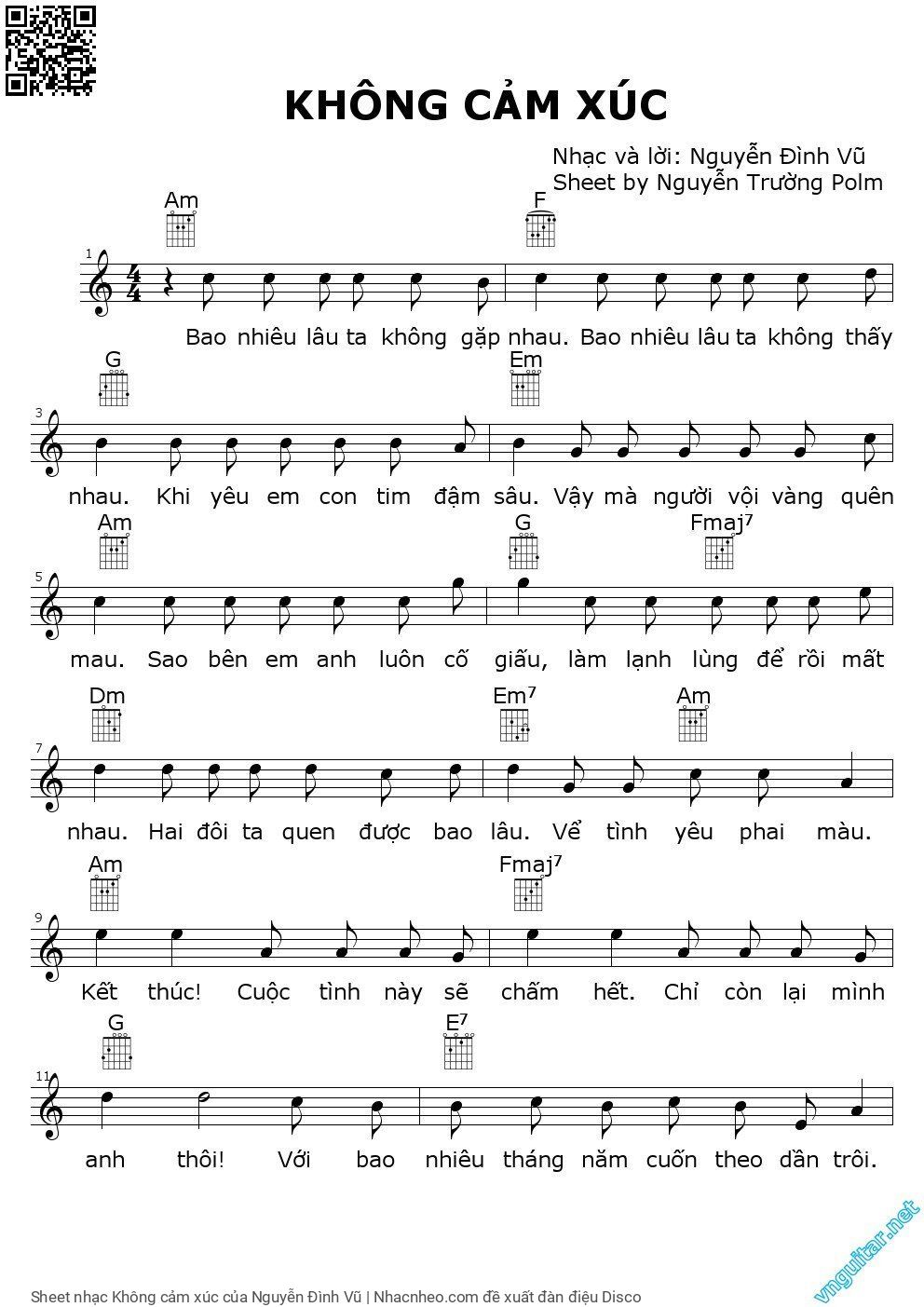 The Videos/audios Không cảm xúc by Nguyễn Đình Vũ were embed from Youtube, Musescore or the other 3rd links. Videos are subject to 3rd's copyright control and may be removed by YouTube's copyright rules and 3rd's policies or maybe included advertisements. If you cannot access to these songs, this mean that have been removed.