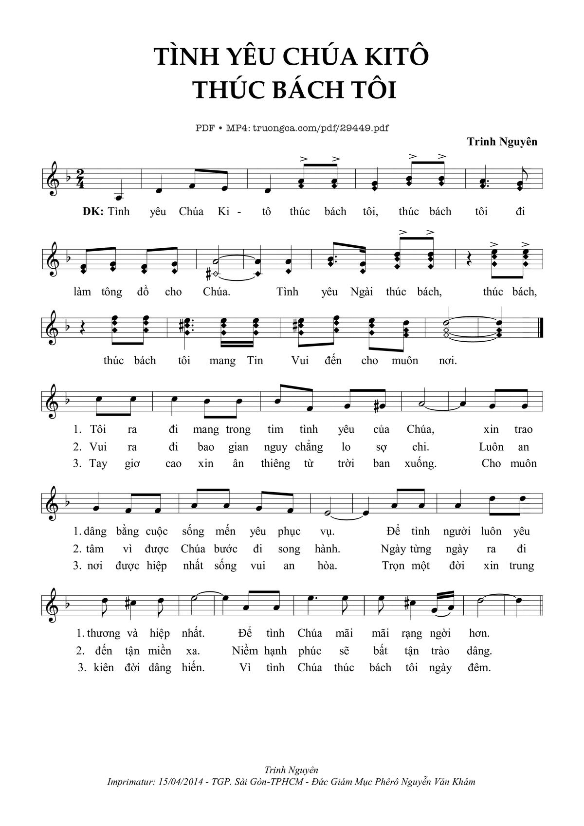Trinh Nguyên Tình yêu Chúa Kitô thúc bách tôi thúc bách tôi đi làm tông đồ cho Chúa [PDF] [Sheet] [Lyrics] [Mp4/Midi]
