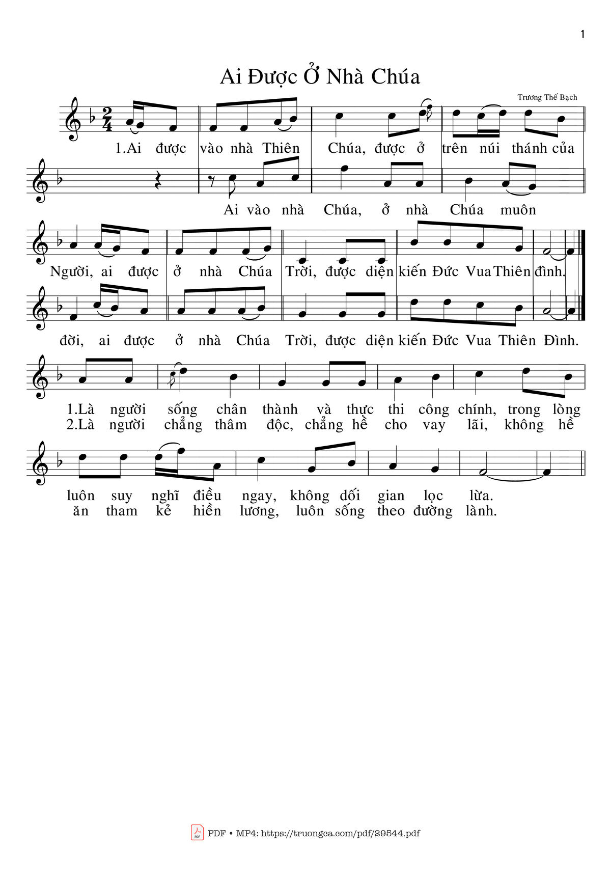 Điệp khúc. Ai được vào nhà Thiên Chúa, được ở trên núi thánh của Người. Ai được ở nhà Chúa Trời, được diện kiến Đức Vua Thiên đình.