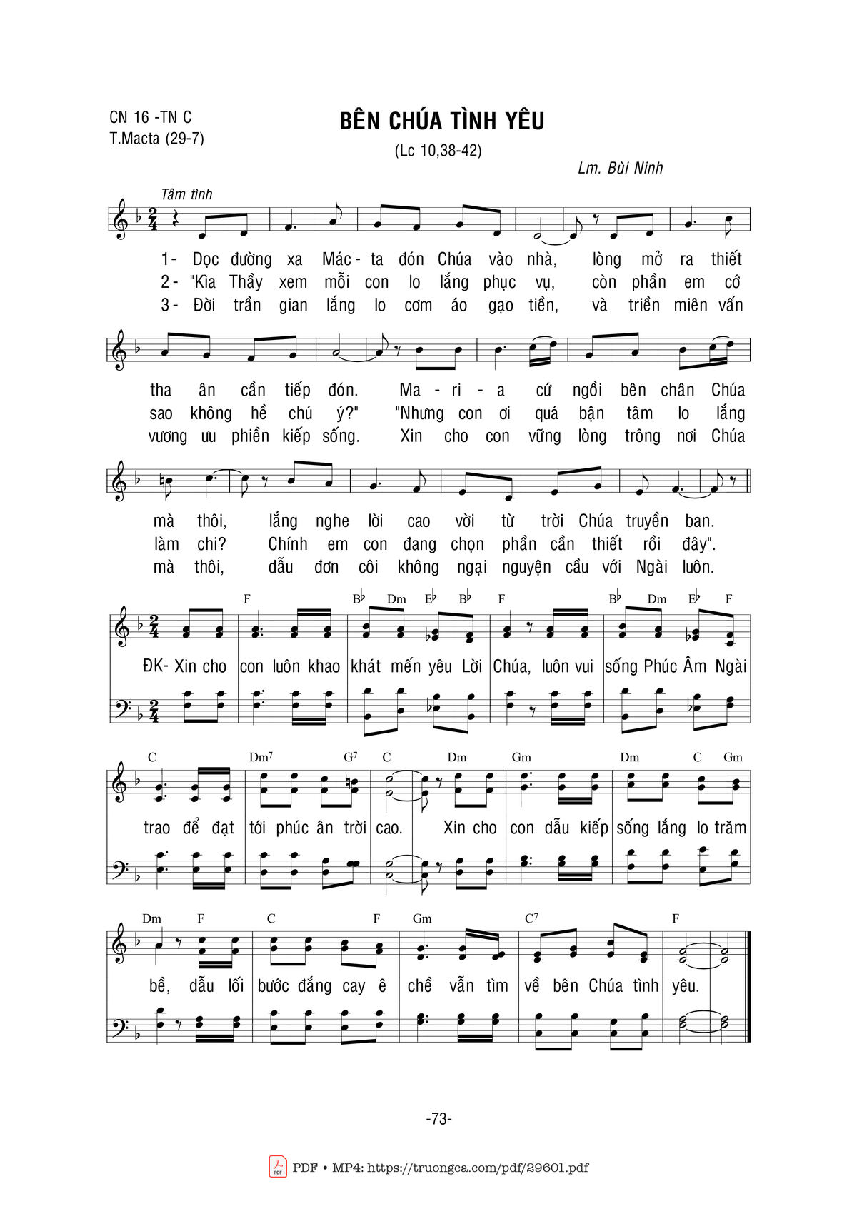 Bùi Ninh Dọc đường xa Mácta đón Chúa vào nhà lòng mở ra thiết tha ân cần tiếp đón [PDF] [Sheet] [Lyrics] [Mp4/Midi]