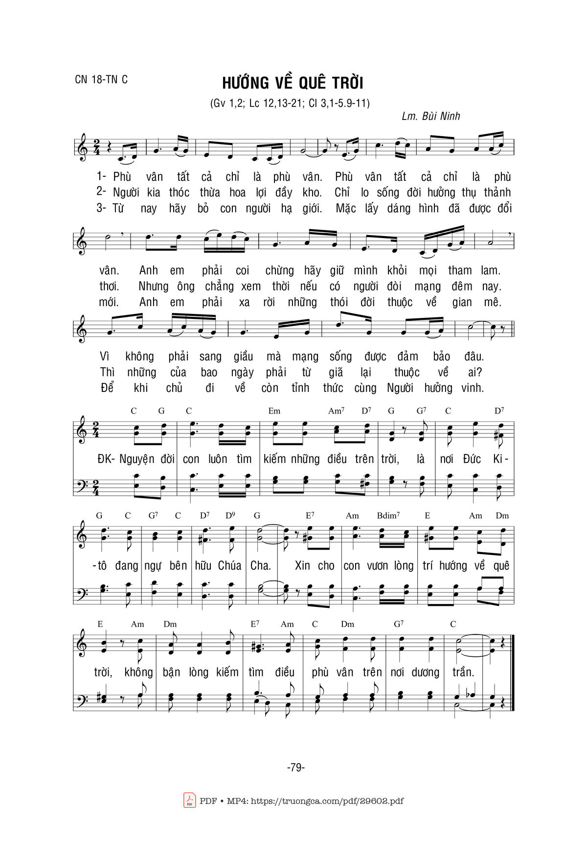 Điệp khúc. Nguyện đời con luôn tìm kiếm những điều trên trời, là nơi Đức Ki-tô đang ngự bên hữu Chúa Cha. Xin cho con vươn lòng trí hướng về quê trời, không bận lòng kiếm tìm điều phù vân trên nơi dương trần.