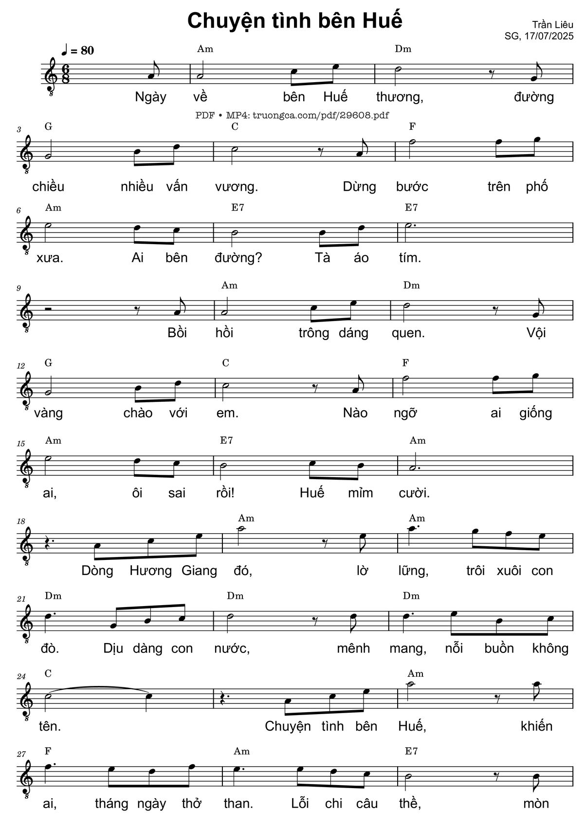 Trần Liêu Ngày về bên Huế thương Đường chiều nhiều vấn vương [PDF] [Sheet] [Lyrics] [Mp4/Midi]