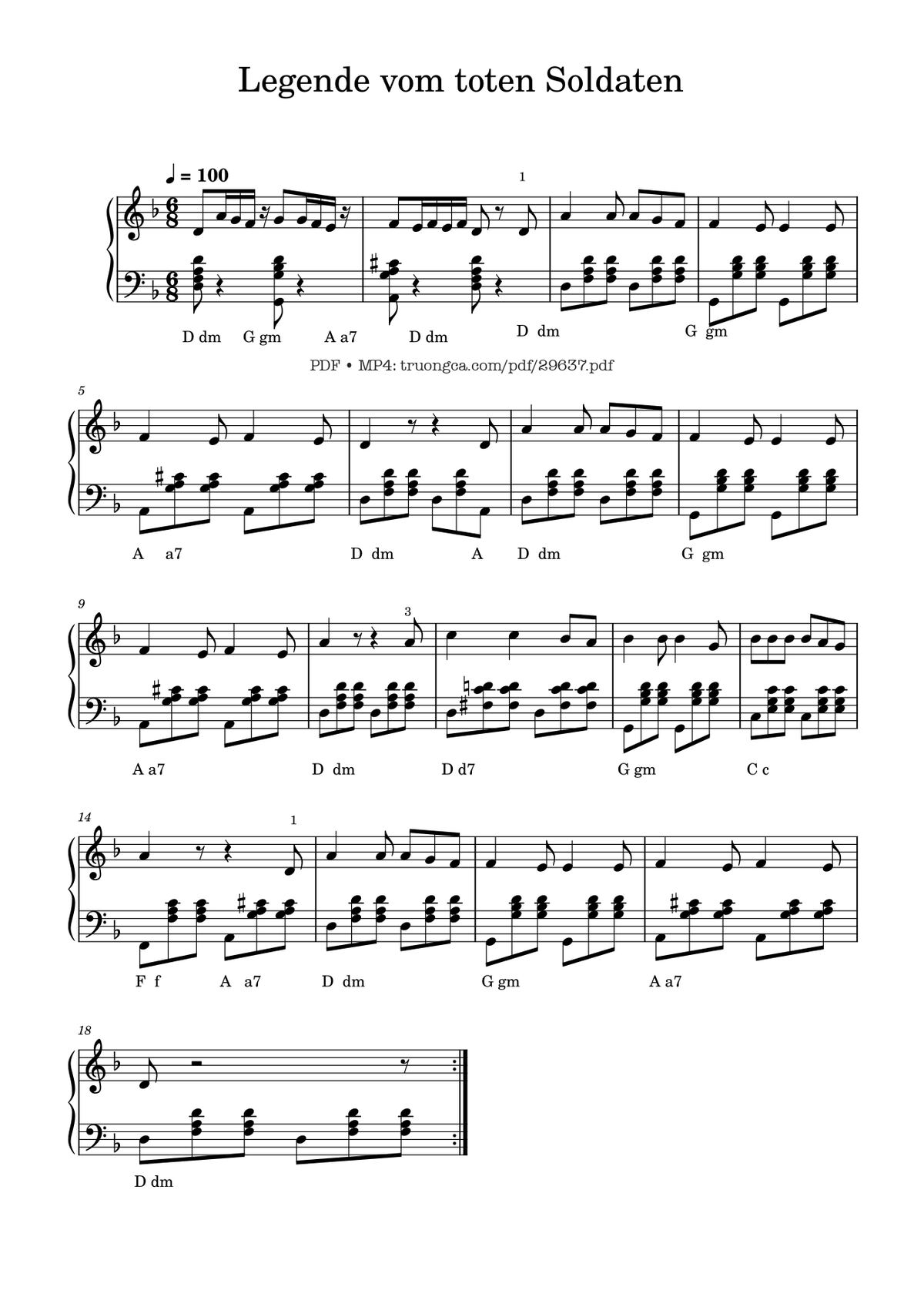 The Videos/audios Legende vom toten Soldaten by Undefined were embed from Youtube, Musescore or the other 3rd links. Videos are subject to 3rd's copyright control and may be removed by YouTube's copyright rules and 3rd's policies or maybe included advertisements. If you cannot access to these songs, this mean that have been removed.