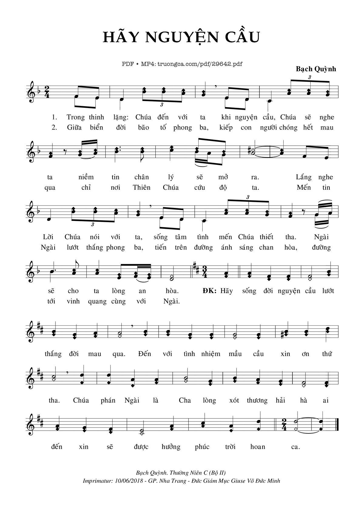 🌾 Imprimatur, Thông tin chuẩn nhận dùng trong phụng vụ Công Giáo: Kết Lễ – Imprimatur – Gp. Nha Trang: 10.06.2018