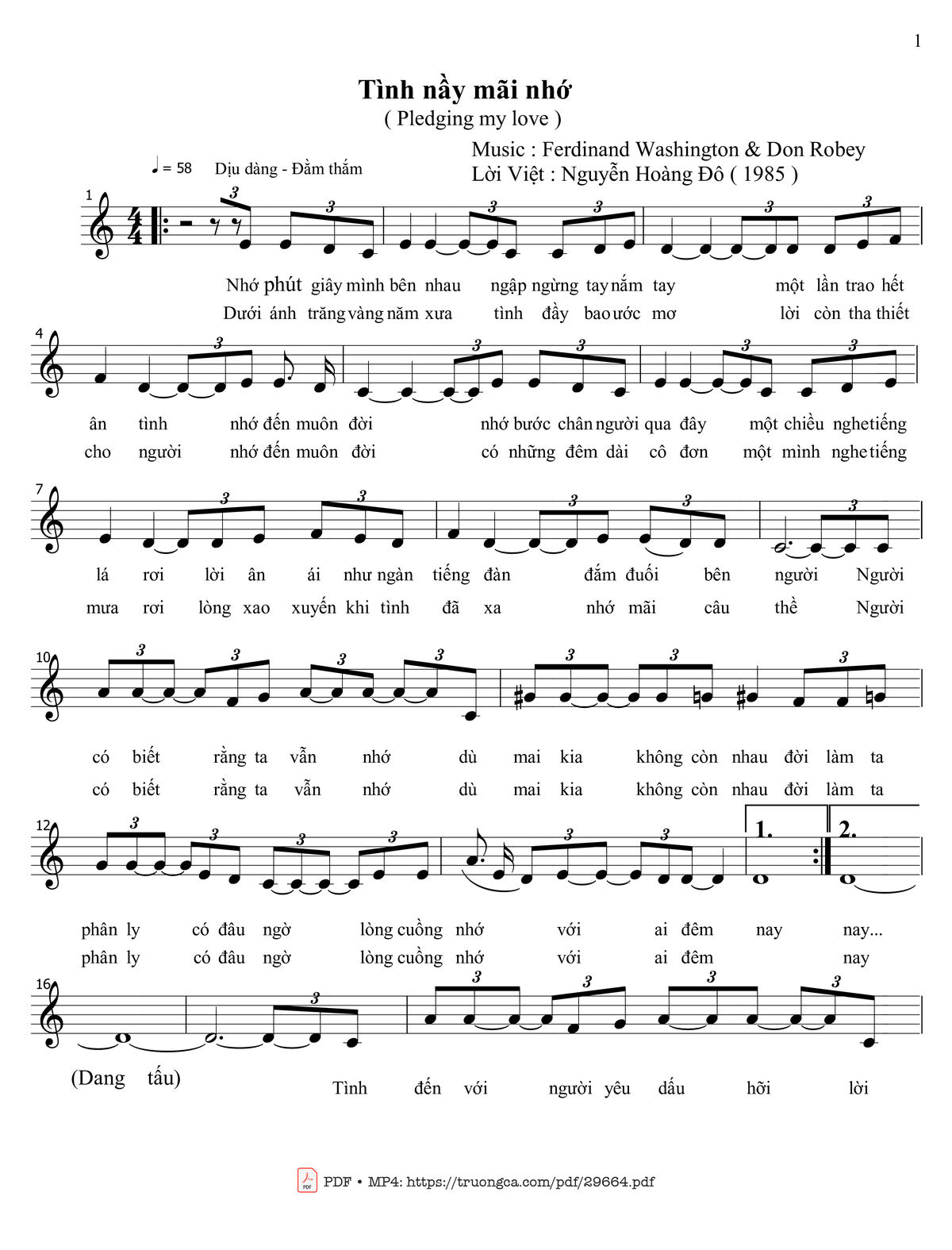 Ferdinand Washington Nhớ phút giây mình bên nhau ngập ngừng tay nắm tay [PDF] [Sheet] [Lyrics] [Mp4/Midi]