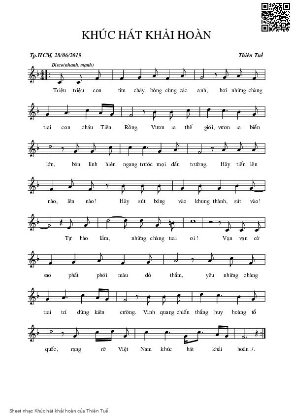 Thiên Tuế Triệu triệu con tim cháy bỏng cùng các anh [PDF] [Sheet] [Lyrics] [Mp4/Midi]