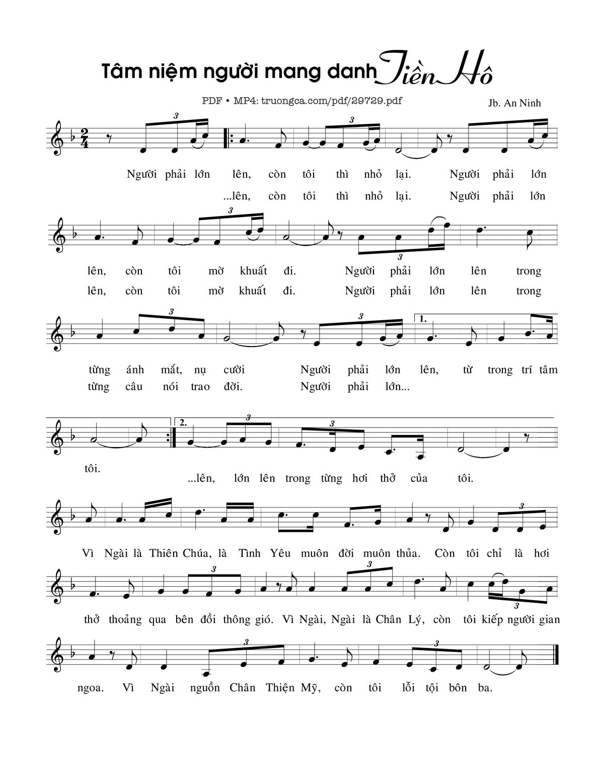 Page 1 of Sheet music PDF Tâm niệm người mang danh Tiền Hô - Jb. An Ninh