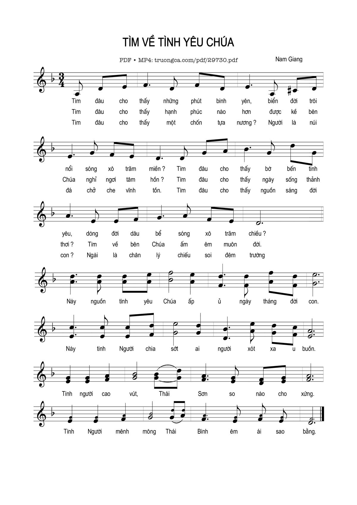 Sheet music Tìm về tình yêu Chúa by Jb. An Ninh and PDF file was posted here to support you to practice singing perfectly. Sheets with notes and chords are for reference only, for non-commercial purposes only, not involved with earning money by buying and selling. Copyright is belong to song writer/author and copyright owner. Truongca.com do not own any copyrighted content. You can download the high-quality PDF files which contain staffs by PDF link above.