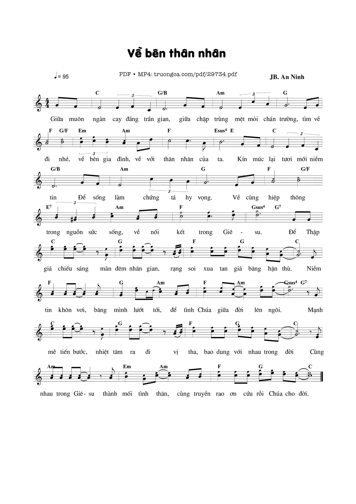 Transposition is the process of moving a song's melody and chords up or down in pitch by a constant interval. The direction of the transposition tool is indicated by a plus (+) sign for up and a minus (-) sign for down. Hover mouse over chords signs to see the chords chart of Về bên thân nhân song.