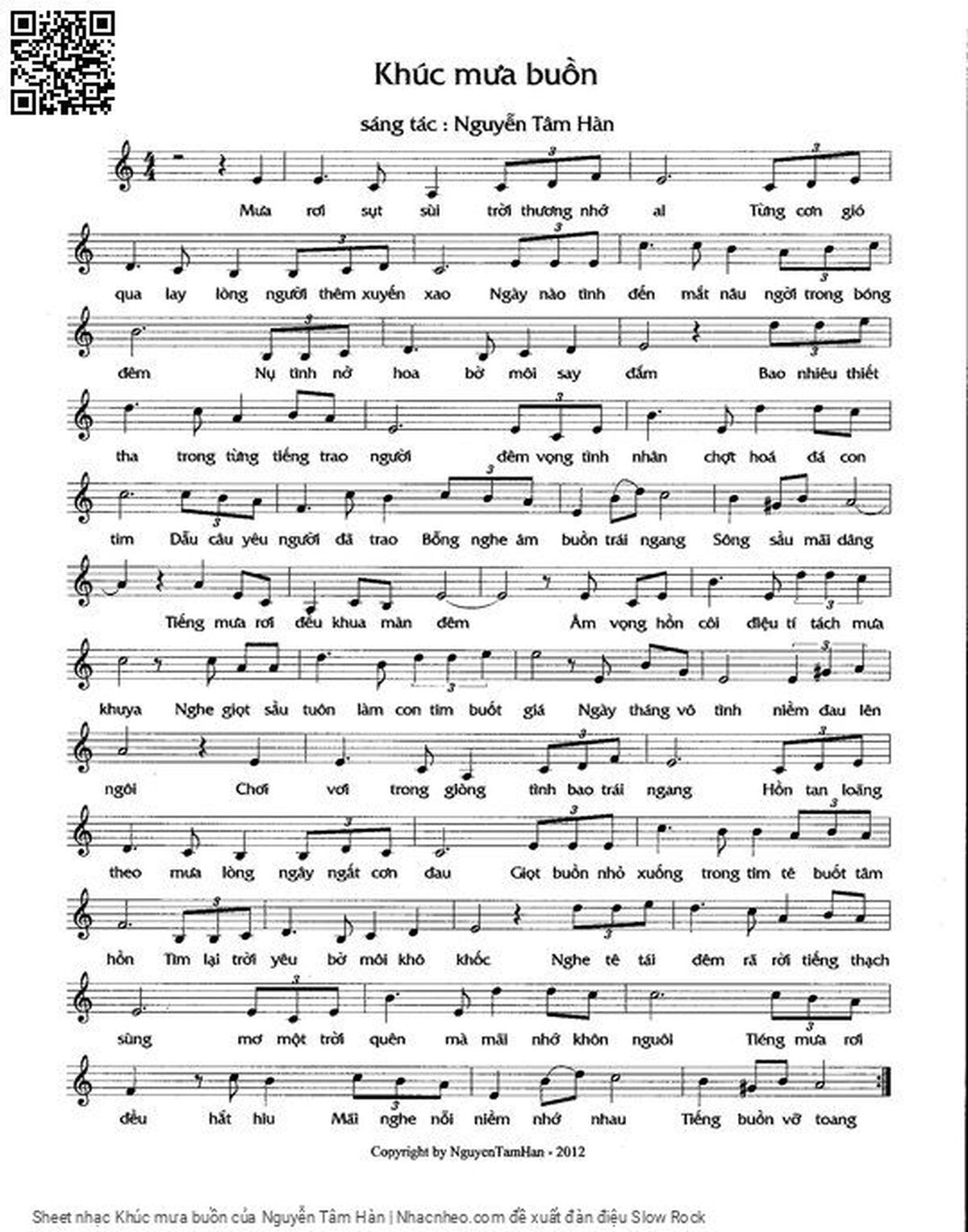 Nguyễn Tâm Hàn Mưa rơi sụt sùi trời thương nhớ ai Từng cơn gió qua lay lòng người thêm xuyến xao [PDF] [Sheet] [Lyrics] [Mp4/Midi]