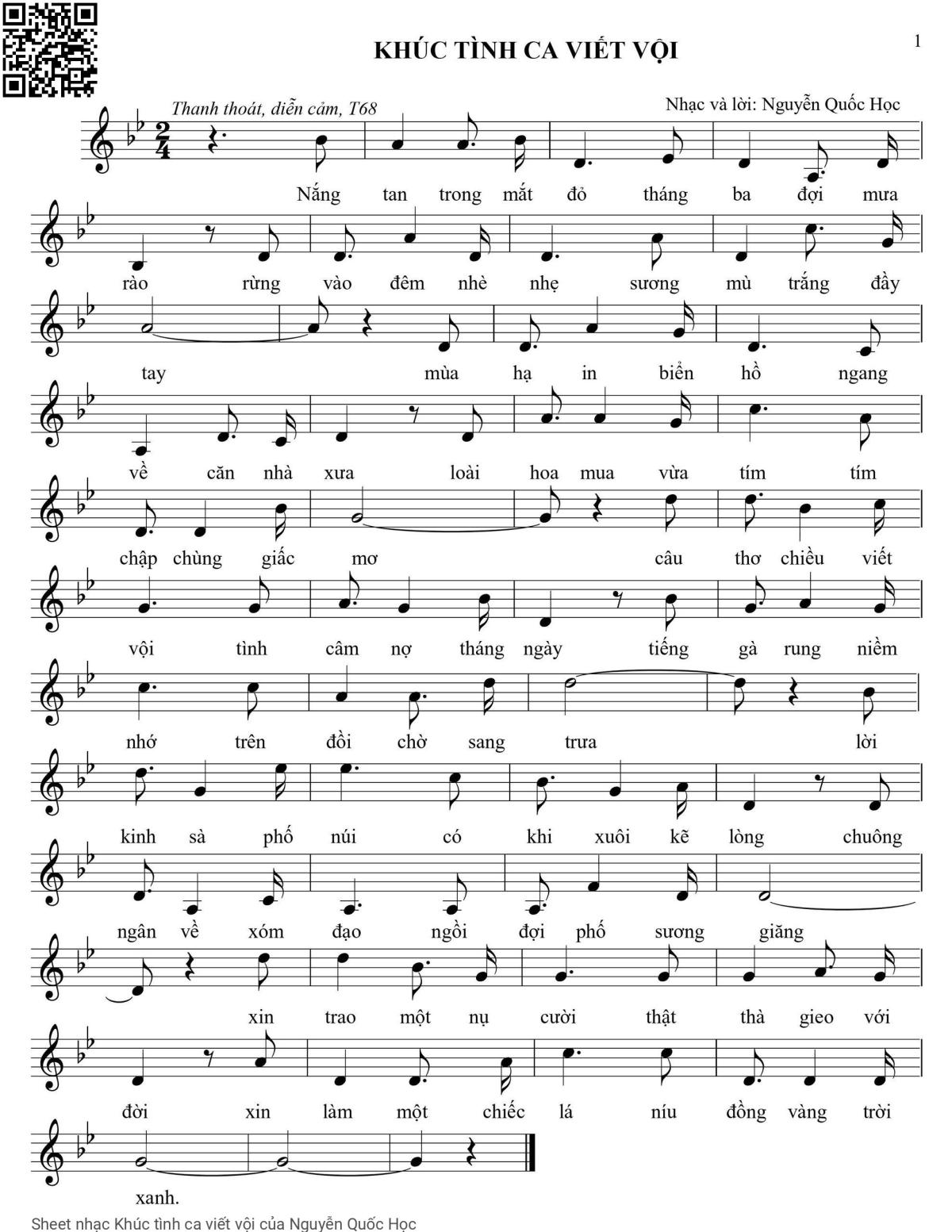 Nguyễn Quốc Học Nắng tan trong mắt đỏ Tháng ba đợi mưa rào [PDF] [Sheet] [Lyrics] [Mp4/Midi]