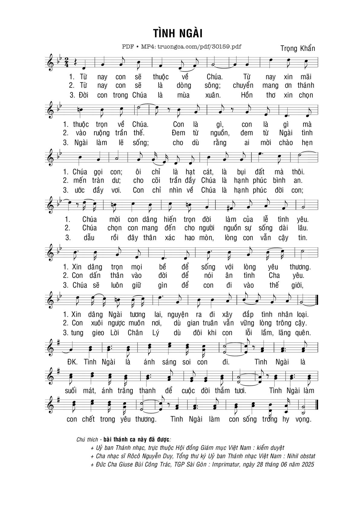 Sheet music Tình Ngài by Trọng Khẩn and PDF file was posted here to support you to practice singing perfectly. Sheets with notes and chords are for reference only, for non-commercial purposes only, not involved with earning money by buying and selling. Copyright is belong to song writer/author and copyright owner. Truongca.com do not own any copyrighted content. You can download the high-quality PDF files which contain staffs by PDF link above.