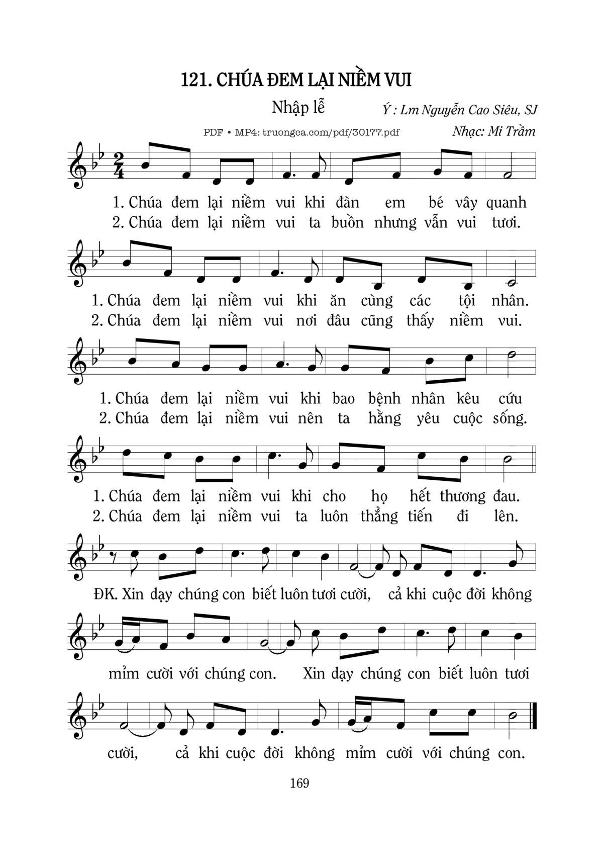 Sheet music Chúa đem lại niềm vui by Mi Trầm and PDF file was posted here to support you to practice singing perfectly. Sheets with notes and chords are for reference only, for non-commercial purposes only, not involved with earning money by buying and selling. Copyright is belong to song writer/author and copyright owner. Truongca.com do not own any copyrighted content. You can download the high-quality PDF files which contain staffs by PDF link above.