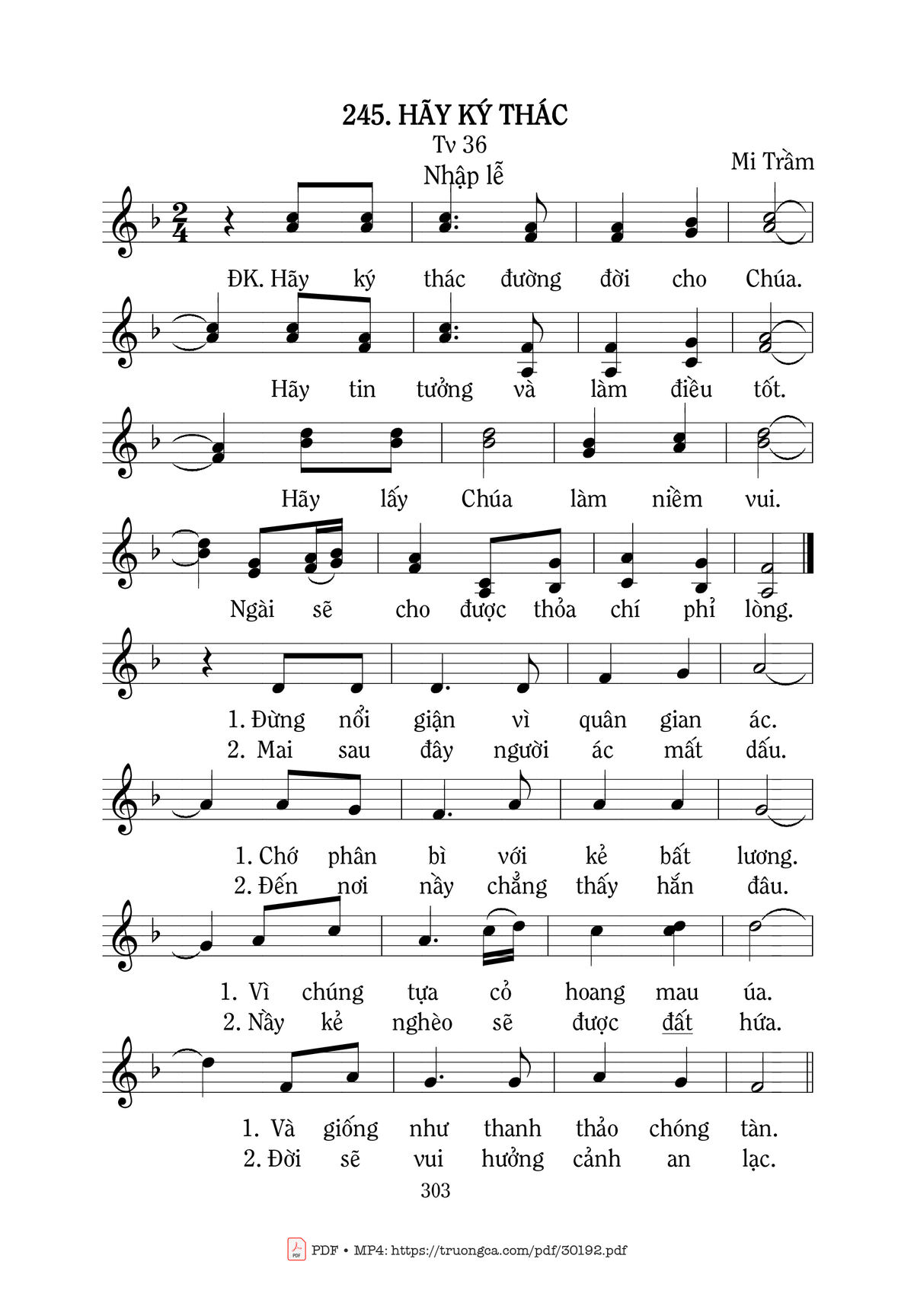 Sheet music Hãy ký thác by Mi Trầm and PDF file was posted here to support you to practice singing perfectly. Sheets with notes and chords are for reference only, for non-commercial purposes only, not involved with earning money by buying and selling. Copyright is belong to song writer/author and copyright owner. Truongca.com do not own any copyrighted content. You can download the high-quality PDF files which contain staffs by PDF link above.