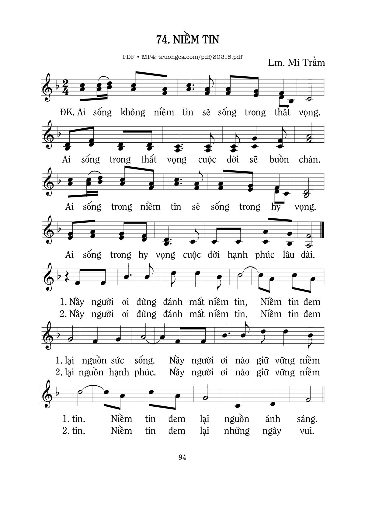 Sheet music Niềm tin by Mi Trầm and PDF file was posted here to support you to practice singing perfectly. Sheets with notes and chords are for reference only, for non-commercial purposes only, not involved with earning money by buying and selling. Copyright is belong to song writer/author and copyright owner. Truongca.com do not own any copyrighted content. You can download the high-quality PDF files which contain staffs by PDF link above.