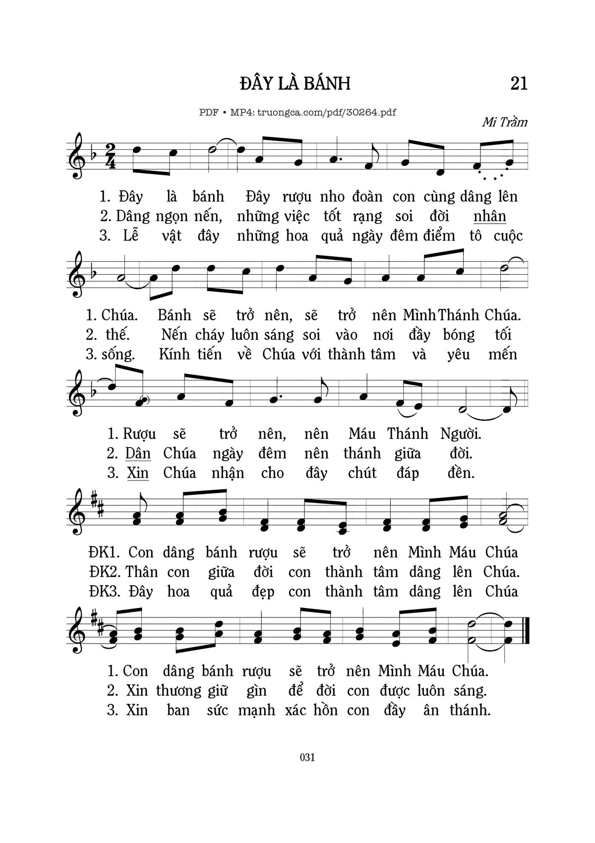 Sheet music Đây là bánh by Mi Trầm and PDF file was posted here to support you to practice singing perfectly. Sheets with notes and chords are for reference only, for non-commercial purposes only, not involved with earning money by buying and selling. Copyright is belong to song writer/author and copyright owner. Truongca.com do not own any copyrighted content. You can download the high-quality PDF files which contain staffs by PDF link above.