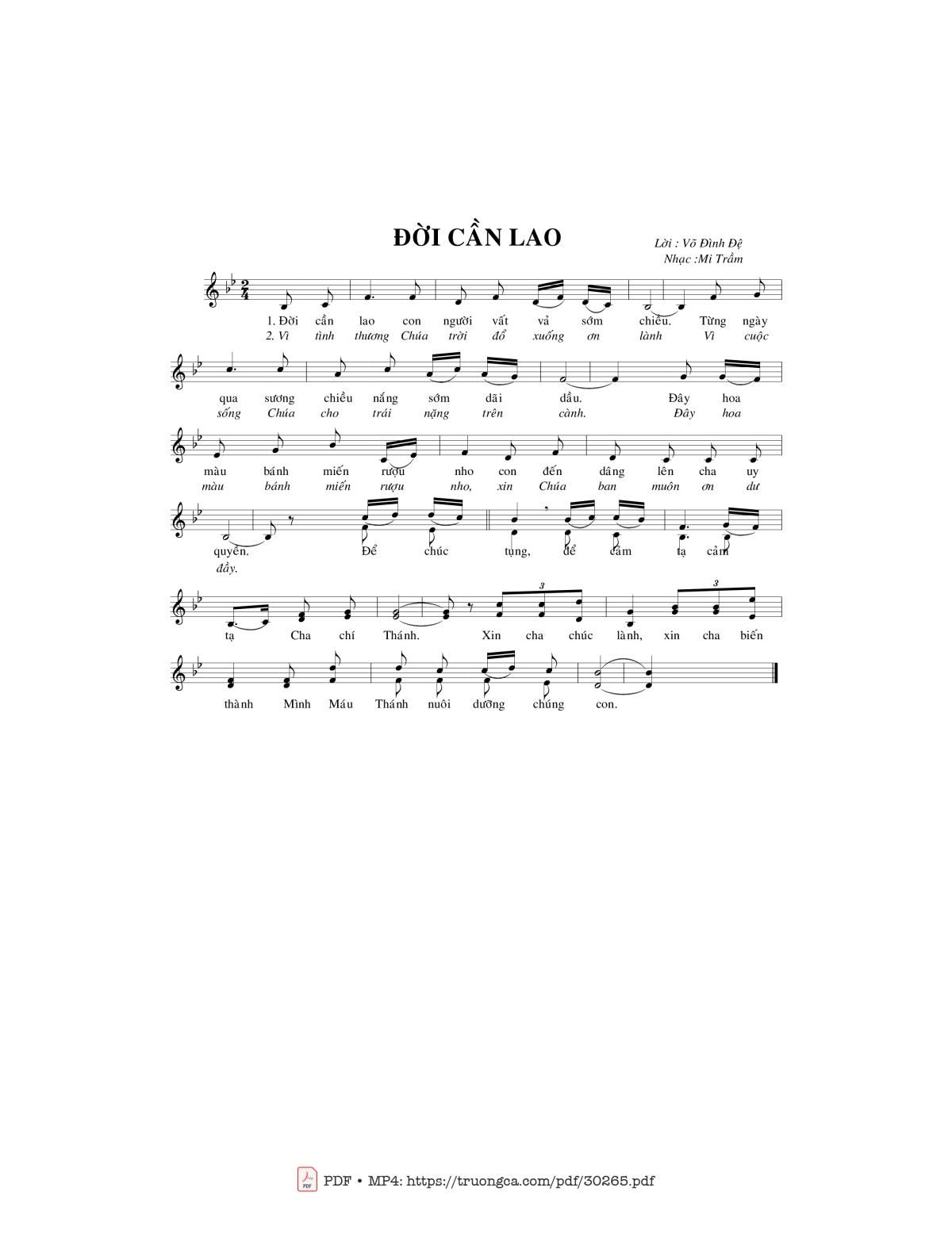 Transposition is the process of moving a song's melody and chords up or down in pitch by a constant interval. The direction of the transposition tool is indicated by a plus (+) sign for up and a minus (-) sign for down. Hover mouse over chords signs to see the chords chart of Đời cần lao song.
