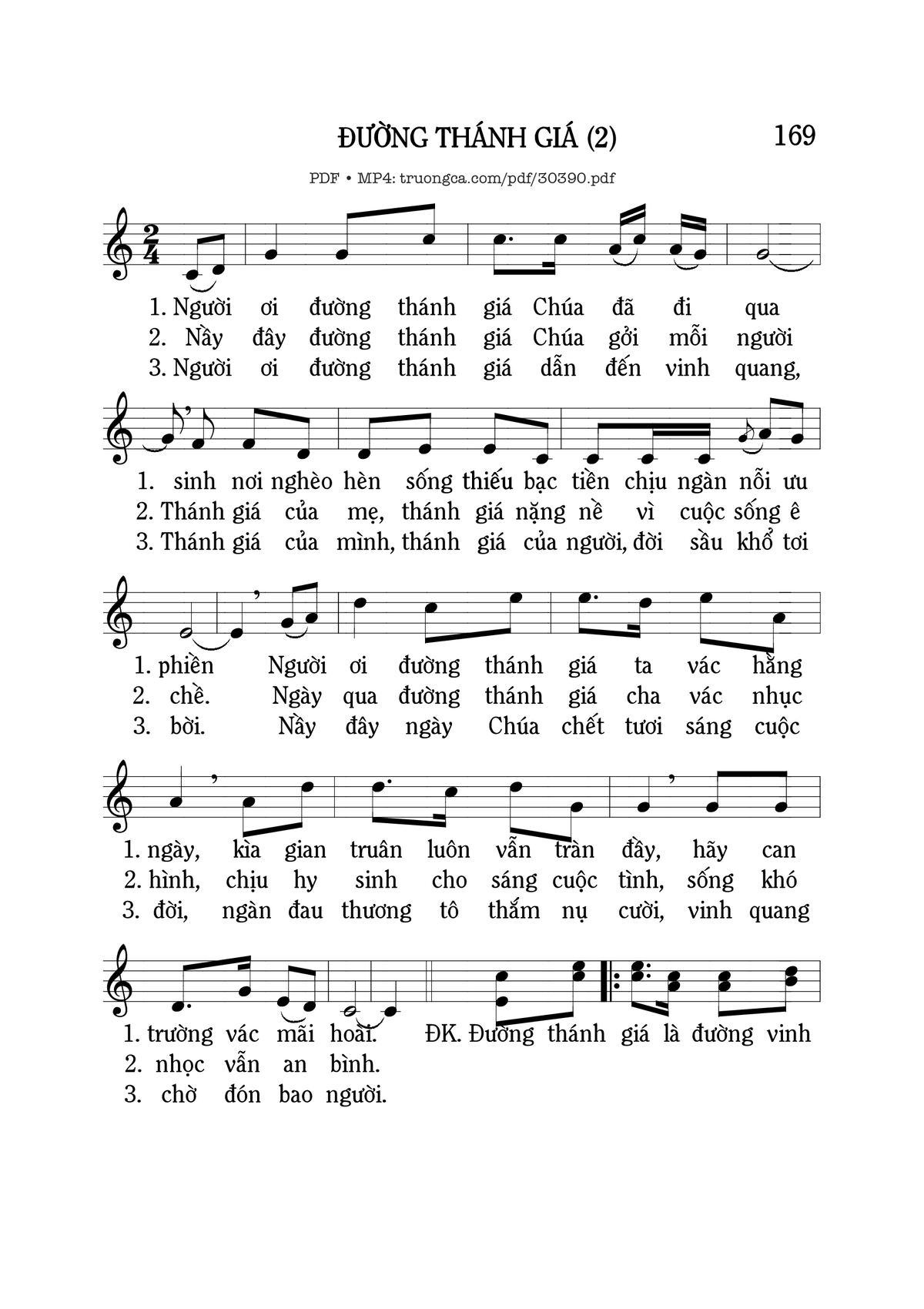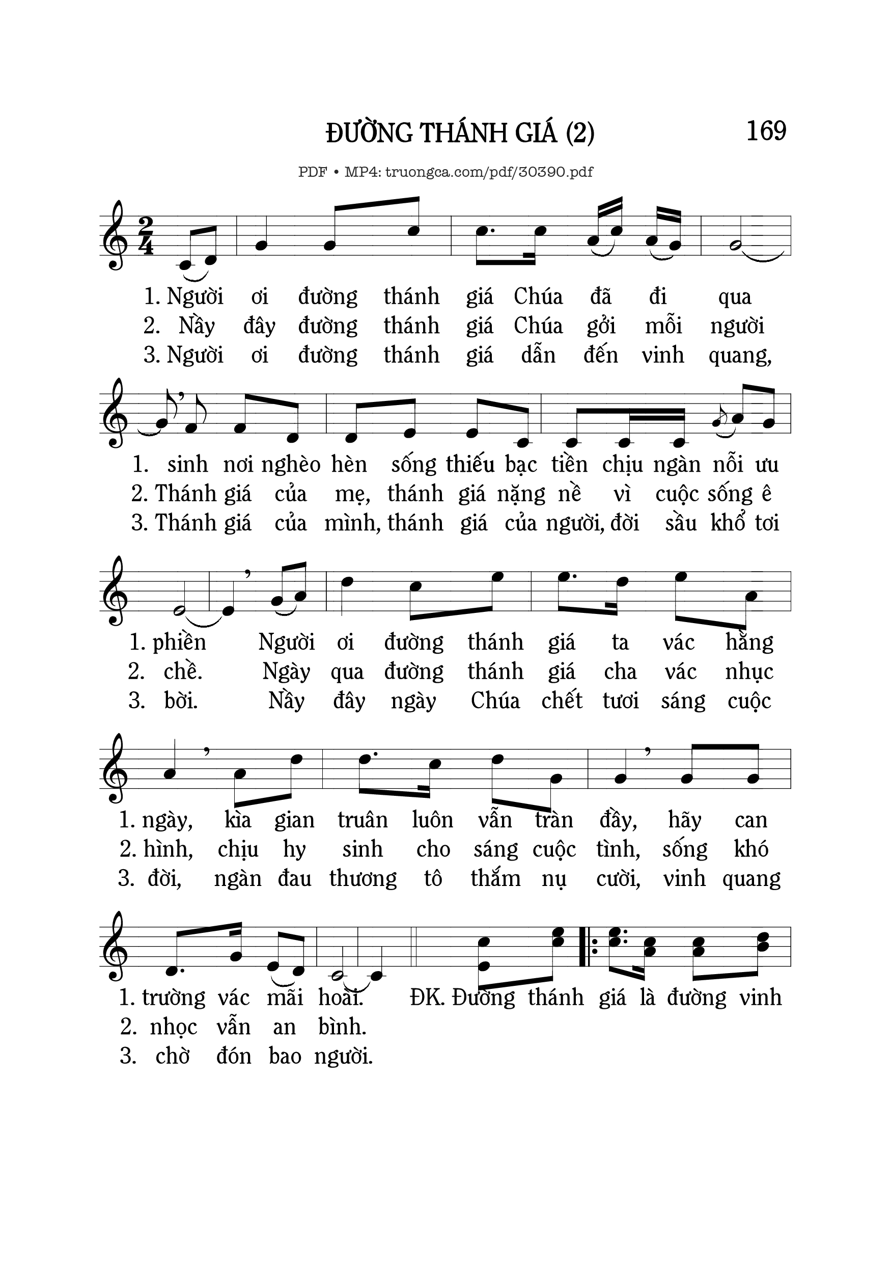Sheet music Đường Thánh giá 2 by Mi Trầm and PDF file was posted here to support you to practice singing perfectly. Sheets with notes and chords are for reference only, for non-commercial purposes only, not involved with earning money by buying and selling. Copyright is belong to song writer/author and copyright owner. Truongca.com do not own any copyrighted content. You can download the high-quality PDF files which contain staffs by PDF link above.