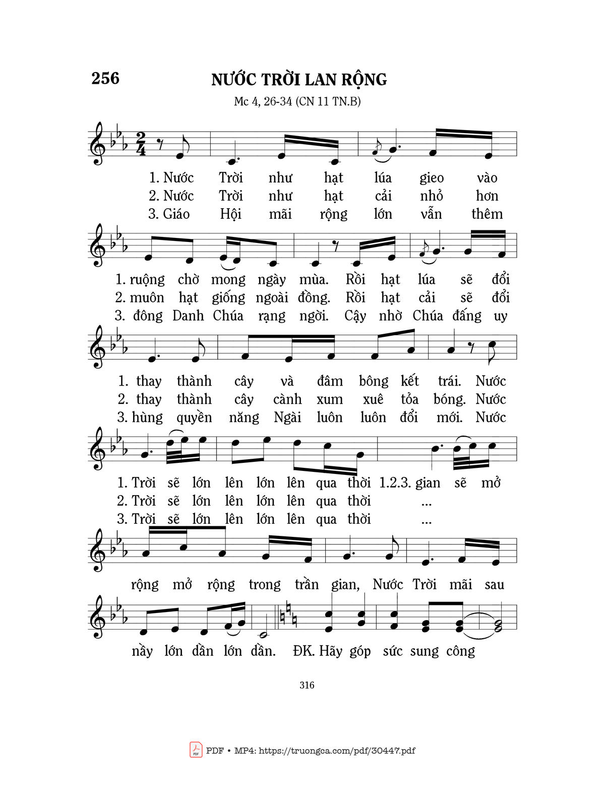 Sheet music Nước Trời lan rộng by Mi Trầm and PDF file was posted here to support you to practice singing perfectly. Sheets with notes and chords are for reference only, for non-commercial purposes only, not involved with earning money by buying and selling. Copyright is belong to song writer/author and copyright owner. Truongca.com do not own any copyrighted content. You can download the high-quality PDF files which contain staffs by PDF link above.