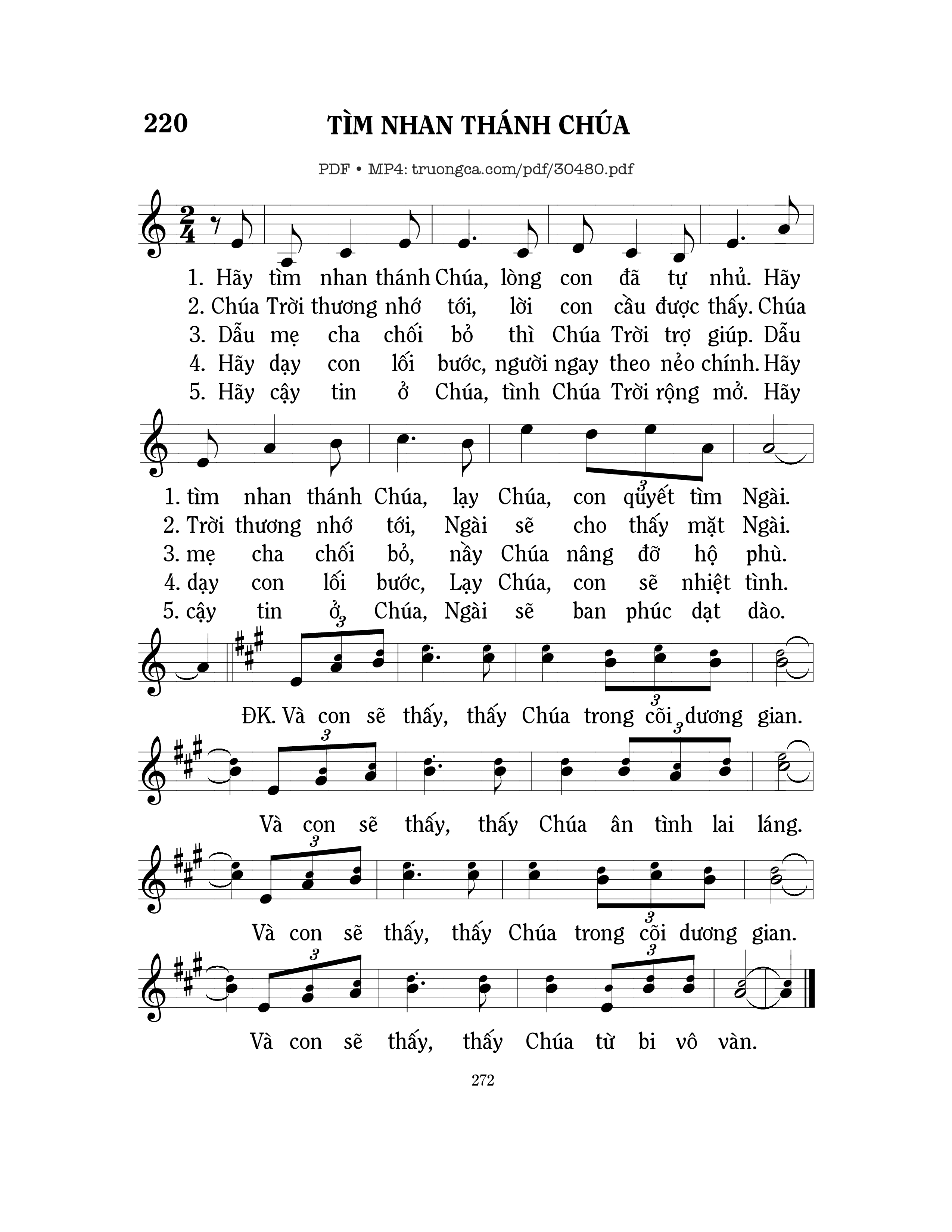 Sheet music Tìm Nhan Thánh Chúa by Mi Trầm and PDF file was posted here to support you to practice singing perfectly. Sheets with notes and chords are for reference only, for non-commercial purposes only, not involved with earning money by buying and selling. Copyright is belong to song writer/author and copyright owner. Truongca.com do not own any copyrighted content. You can download the high-quality PDF files which contain staffs by PDF link above.