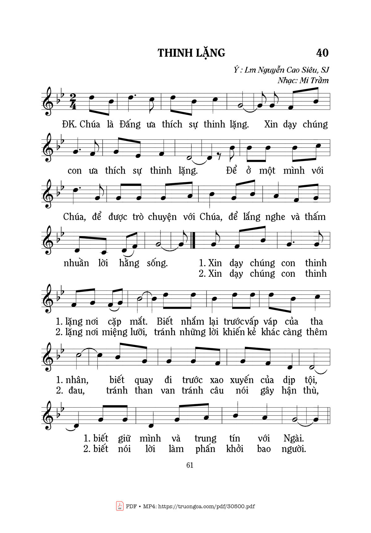 Sheet music Thinh lặng by Mi Trầm and PDF file was posted here to support you to practice singing perfectly. Sheets with notes and chords are for reference only, for non-commercial purposes only, not involved with earning money by buying and selling. Copyright is belong to song writer/author and copyright owner. Truongca.com do not own any copyrighted content. You can download the high-quality PDF files which contain staffs by PDF link above.