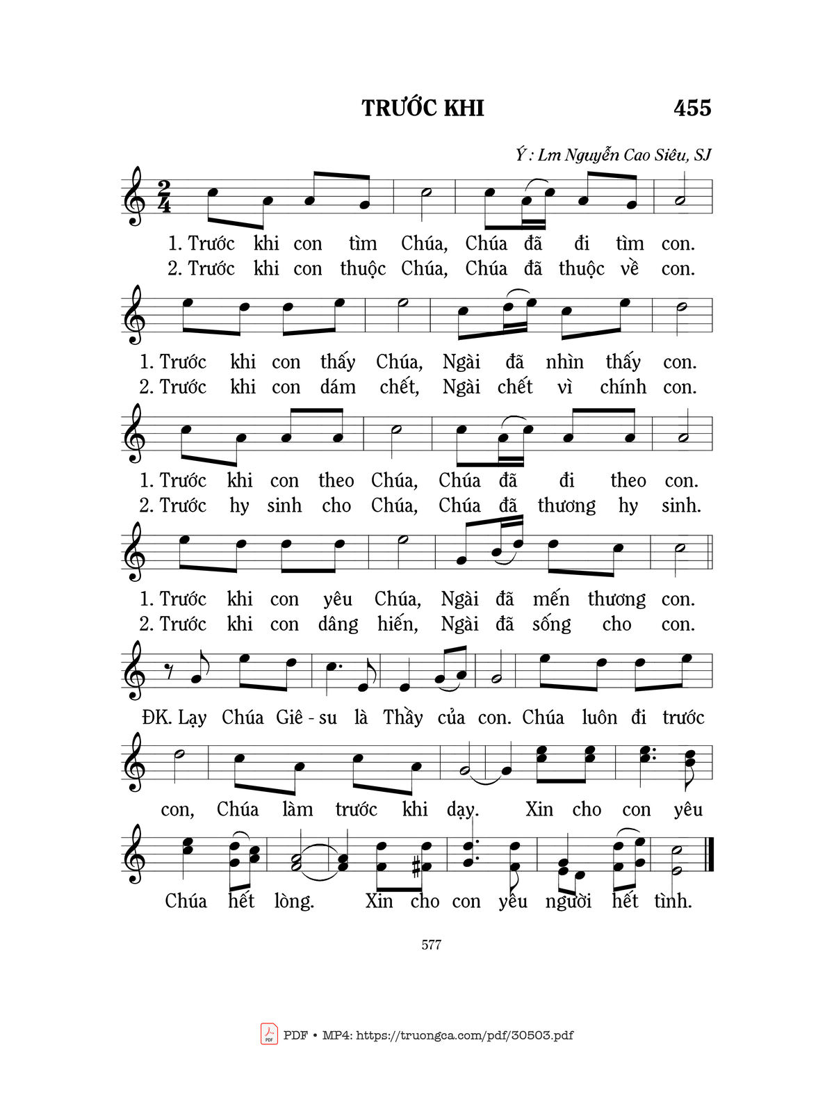 Sheet music Trước khi by Mi Trầm and PDF file was posted here to support you to practice singing perfectly. Sheets with notes and chords are for reference only, for non-commercial purposes only, not involved with earning money by buying and selling. Copyright is belong to song writer/author and copyright owner. Truongca.com do not own any copyrighted content. You can download the high-quality PDF files which contain staffs by PDF link above.