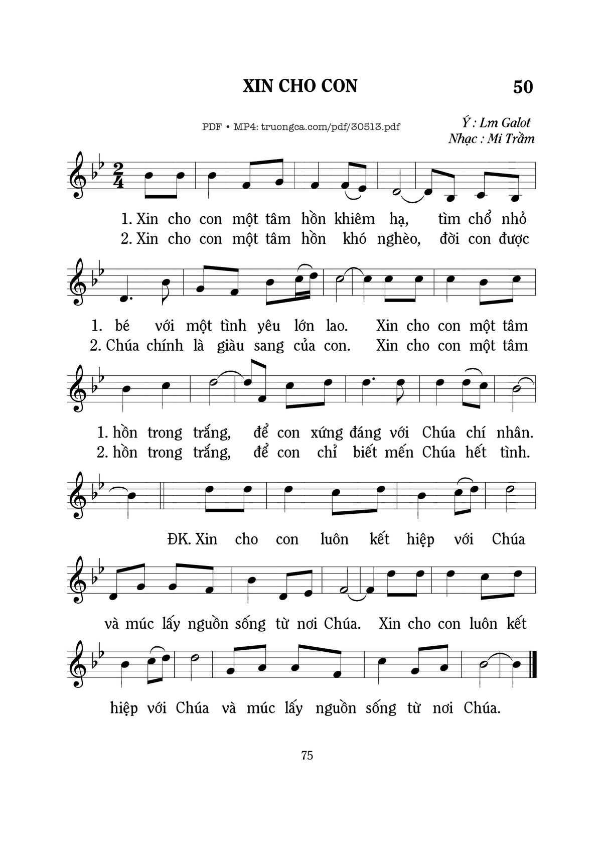 Sheet music Xin cho con by Mi Trầm and PDF file was posted here to support you to practice singing perfectly. Sheets with notes and chords are for reference only, for non-commercial purposes only, not involved with earning money by buying and selling. Copyright is belong to song writer/author and copyright owner. Truongca.com do not own any copyrighted content. You can download the high-quality PDF files which contain staffs by PDF link above.