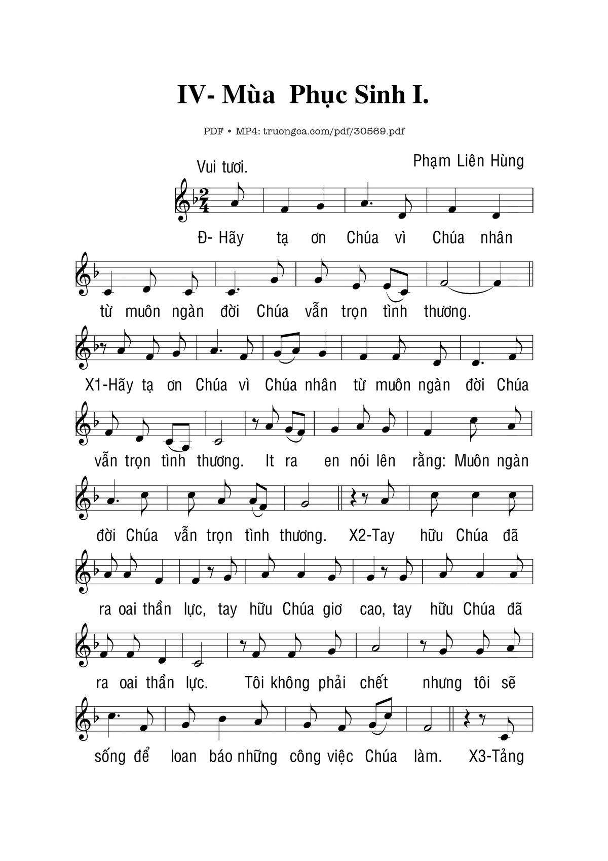 Sheet music Mùa Phục Sinh (1) by Phạm Liên Hùng and PDF file was posted here to support you to practice singing perfectly. Sheets with notes and chords are for reference only, for non-commercial purposes only, not involved with earning money by buying and selling. Copyright is belong to song writer/author and copyright owner. Truongca.com do not own any copyrighted content. You can download the high-quality PDF files which contain staffs by PDF link above.